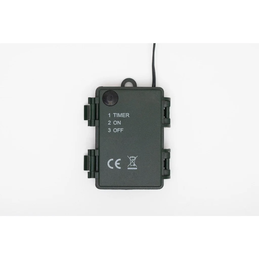 A beépített 100 db melegfehér LED melegséget és ünnepi hangulatot áraszt. A fényfüzért 8 programos vezérlő működteti, mely lehetővé teszi a különféle fényjátékok közötti váltást – így a fenyő mindig az adott hangulathoz igazítható. Az elemes működés (3xAAA, nem tartozék) révén bárhová elhelyezhető, nincs szükség konnektorra, így szabadon variálható a dekorációs hely.