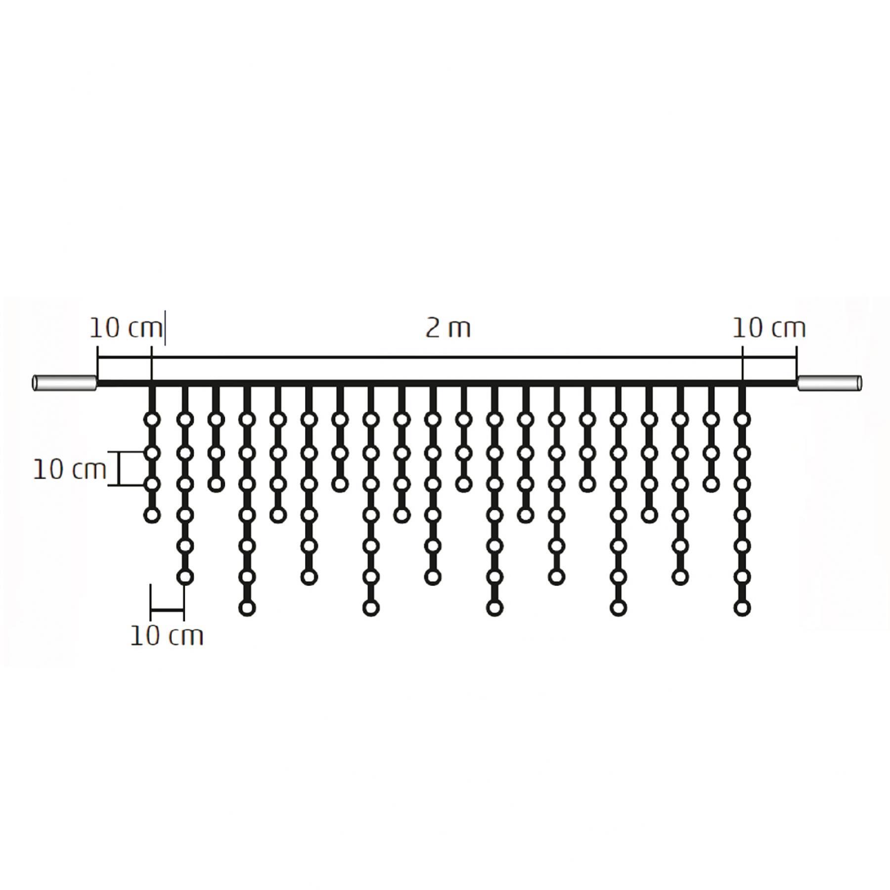 Ez a lenyűgöző fényfüggöny 100 db hidegfehér LED-del világítja meg az otthont, teret adva az ünnepi hangulatnak, miközben hideg, téli fényt áraszt. Ideális megoldás ablakok, erkélyek, teraszok, kerítések vagy belső terek dekorálására, hiszen különleges, szemet gyönyörködtető látványt nyújt, és a LED technológia hosszú élettartamot biztosít alacsony energiafogyasztás mellett. Ez a 2 méteres, sorolható fényfüggöny lehetővé teszi, hogy több szettet is egymáshoz kapcsoljon, így igény szerint bővítheti a fényfüzér hosszát.