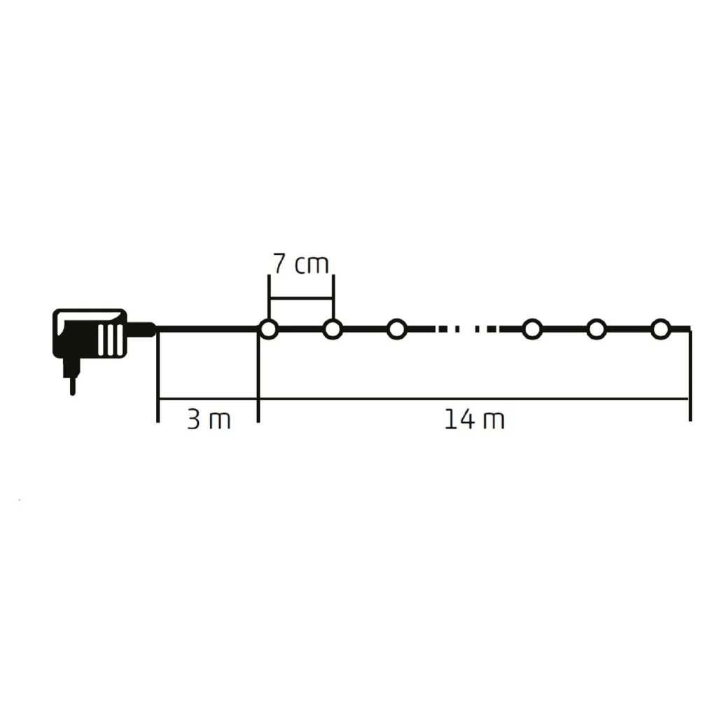 | Hossz | 14 m füzérhossz (7 cm távolság a LED-ek között) |