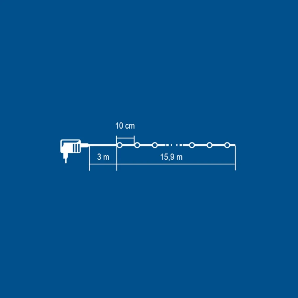| Hossz | fényfüzér: 15,9 m, tápvezeték: 3 m |