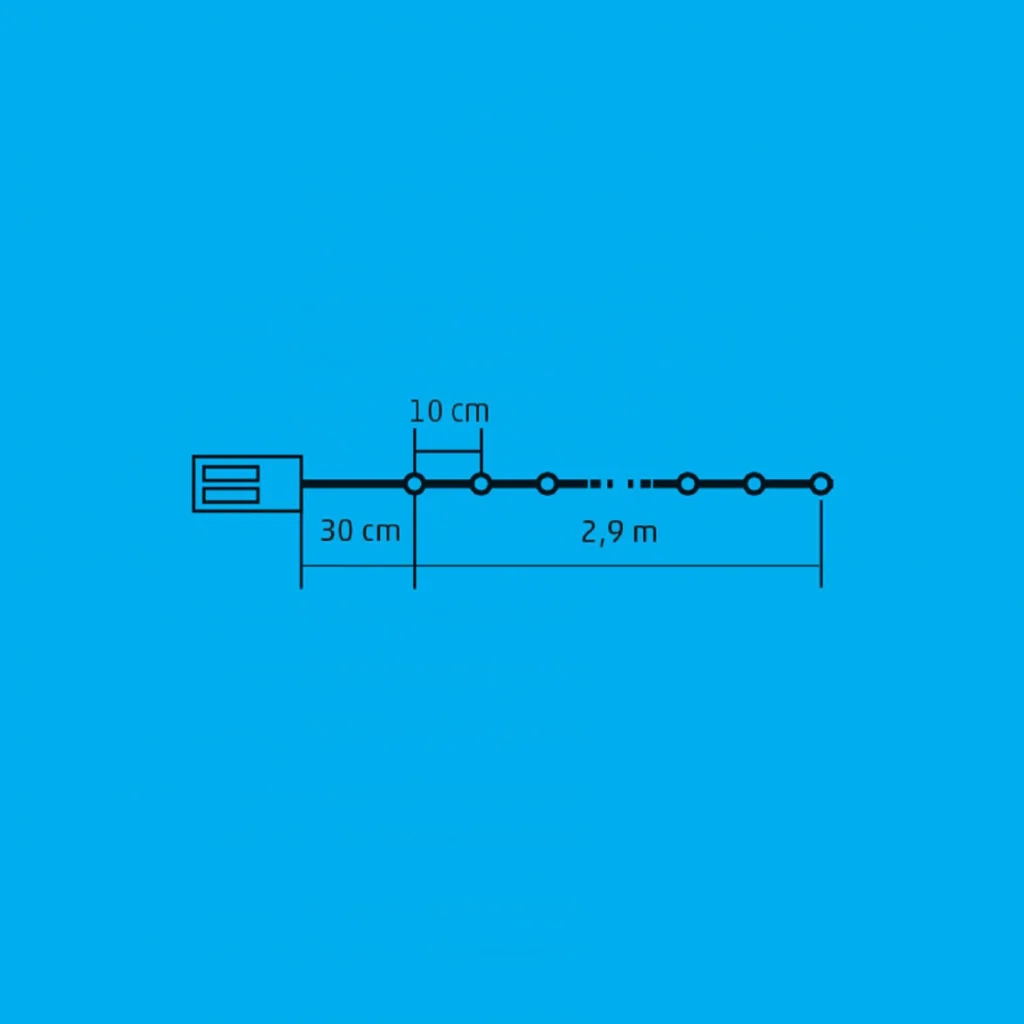 Az ML 30/WW pont ezt kínálja: egy beltéri fényfüzér 30 db melegfehér micro-LED-del, amelyek mindegyike fényesen ragyogó, pontszerű fényt bocsát ki.