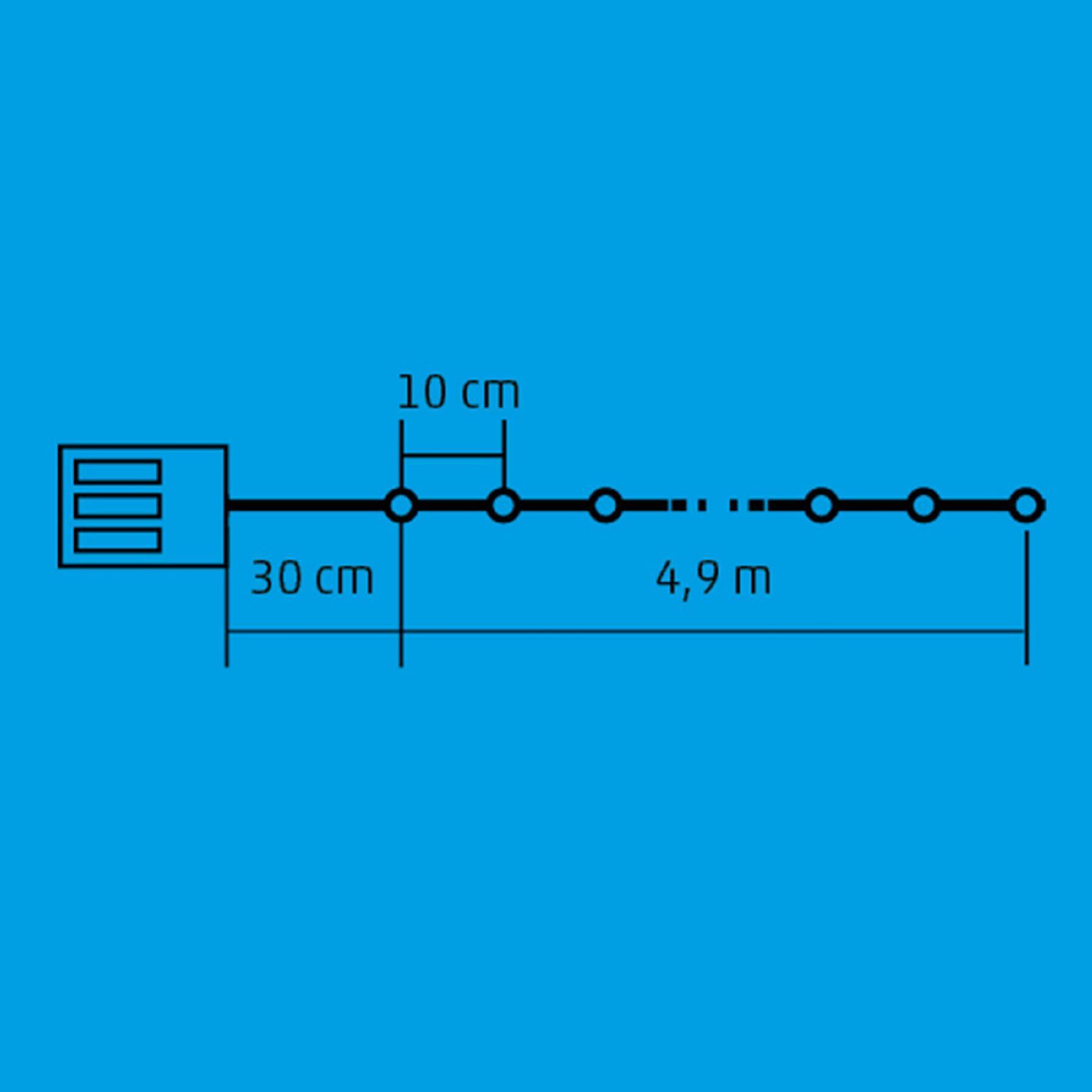 Az ML 50/WW pont ezt kínálja: egy beltéri fényfüzér 50 db melegfehér micro-LED-del, amelyek mindegyike fényesen ragyogó, pontszerű fényt bocsát ki.
