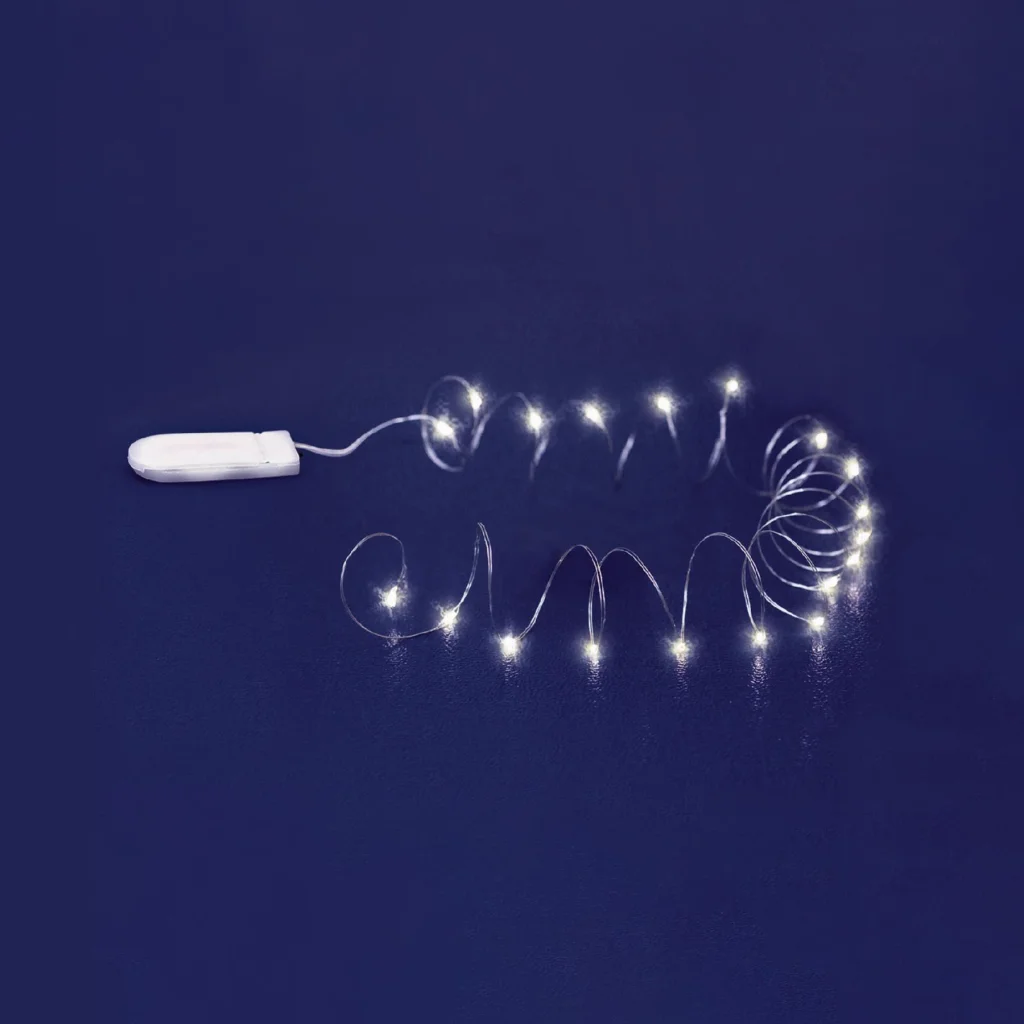 A fényfüzér gombelemes tápellátással működik, 2 darab CR2032-es elem tartozik hozzá, így azonnal használatra kész. A LED-ek közötti 10 cm távolság optimális fényelosztást biztosít, hogy minden egyes pontszerű LED fénye kiemelkedően érvényesüljön. Ez a fényfüzér tökéletes választás minden olyan beltéri dekorációhoz, ahol a kifinomult, elegáns hangulatvilágítás a cél. A hidegfehér fények letisztult, modern megjelenést kölcsönöznek a térnek, legyen szó ünnepi dekorációról, egy romantikus vacsoráról vagy egyszerűen csak egy hétköznapi hangulatfényről.