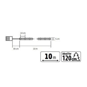 A fényfüzér 10 méter hosszúságú, 5 cm széles ezüst szalagot kínál, amely egyaránt alkalmas polcokra, ablakkeretekre, kandallópárkányokra vagy akár asztali dekorációként is. A LED-ek 10 cm-enkénti elhelyezése biztosítja az egyenletes fényeloszlást, így minden részlet megkapja a megfelelő kiemelést.