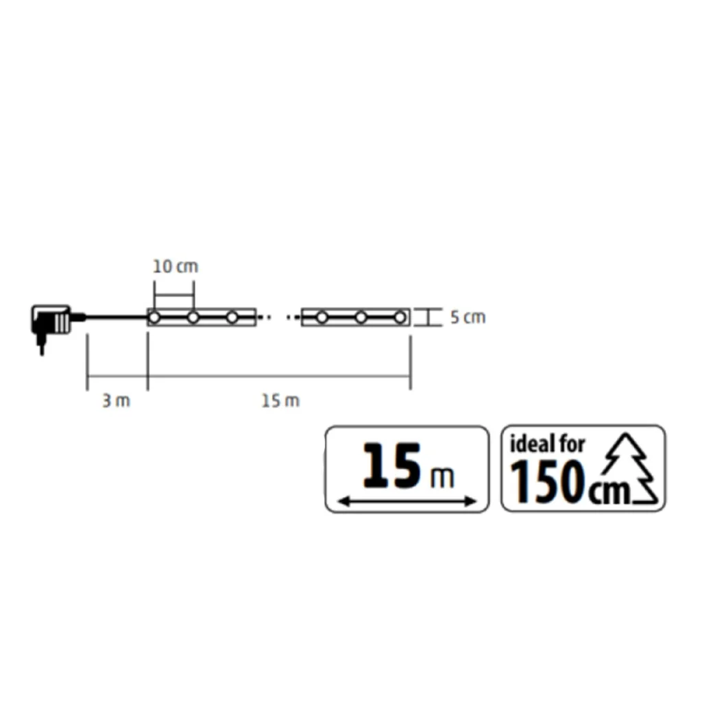 | Méretek | hosszúság: 15 m / szélesség: 5 cm / LED-ek távolsága: 10 cm |