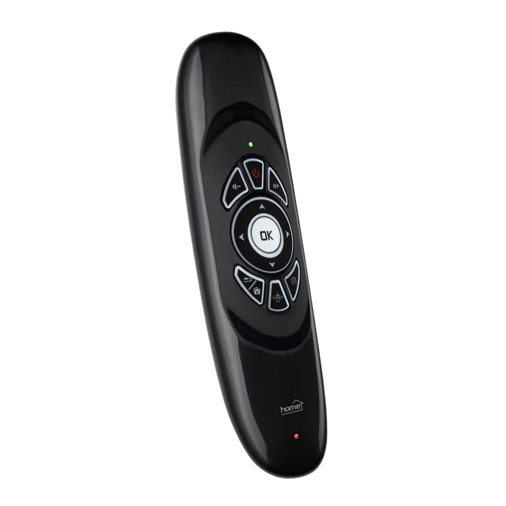 A Home URCAIR2 SMART távirányító kompatibilis az okos TV-kkel, TV box-okkal, média lejátszókkal, játék konzolokkal, projektorokkal, számítógépekkel, notebookokkal, mini PC-kkel, táblagépekkel és okostelefonokkal. A beépített háromtengelyes giroszkóp mozgásérzékelő pontos és könnyű irányítást biztosít. Az angol QWERTY billentyűzet 46+11 gombja hét különböző színben világít, így sötétben is egyszerű a használat.