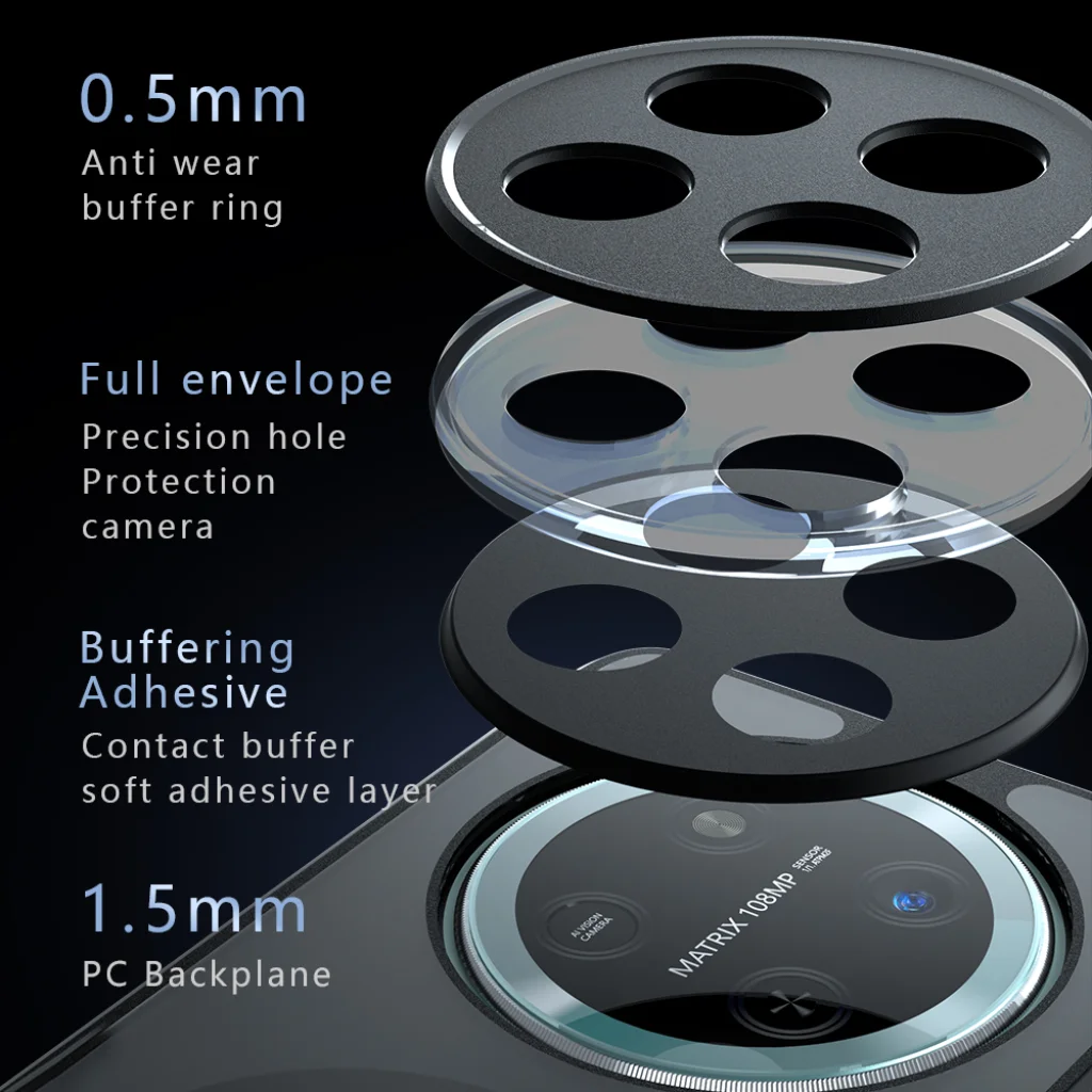 - Fejlett kamera védelem: A 0.5 mm-rel megemelt, kopásálló puffer gyűrű és a "full envelope" precíziós kialakítás teljes mértékben védi a telefon komplex kamerarendszerét a karcolásoktól és az ütődésektől. A 1.5 mm-es vastagságú, erős PC hátlap további biztonságot nyújt.