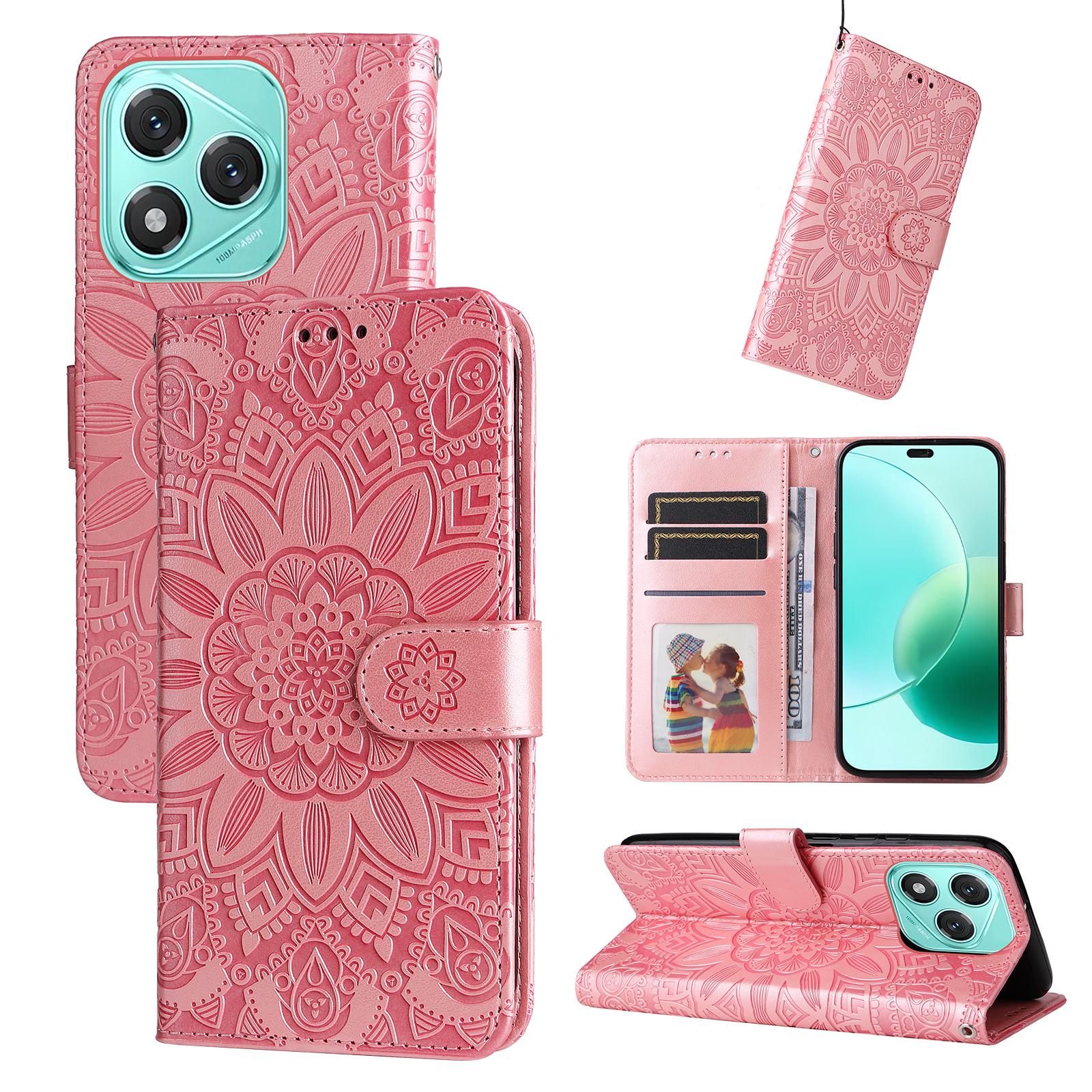 Honor 400 Lite napraforgó mintás dombornyomott fliptok – rózsaszín(Globális verzióhoz)