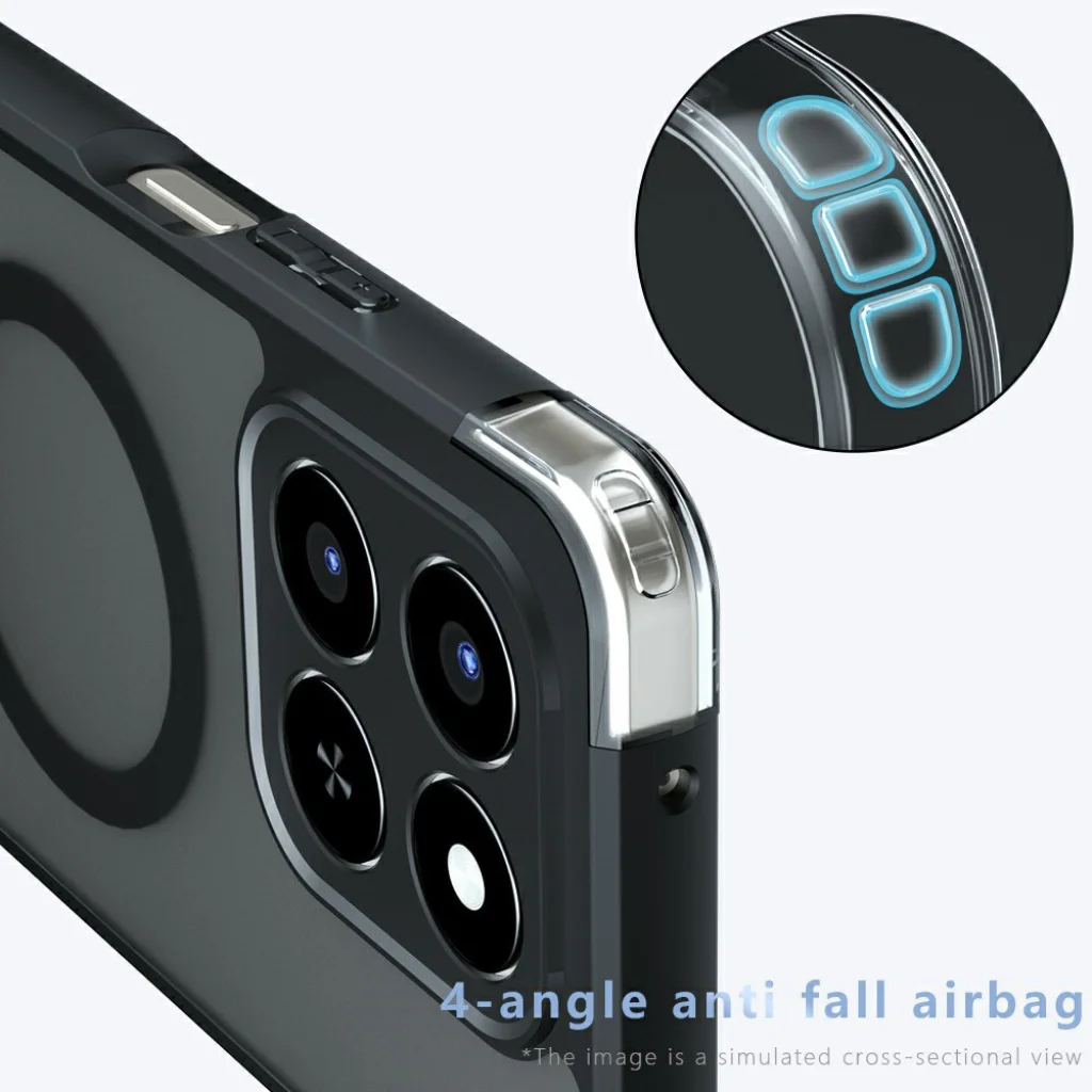 A Techsuit PureFrost MagSafe tokot úgy tervezték, hogy a legmostohább körülmények között is megóvja telefonját. A speciális légpárnás technológia a tok minden sarkában stratégiailag elhelyezett rekeszeket használ, amelyek ütés esetén a becsapódás erejét szétoszlatják és elnyelik. Ez a fejlett védelem a 2.4 méteres ejtési teszteken is bizonyította hatékonyságát, így Ön nyugodt lehet, bárhová is viszi telefonját.