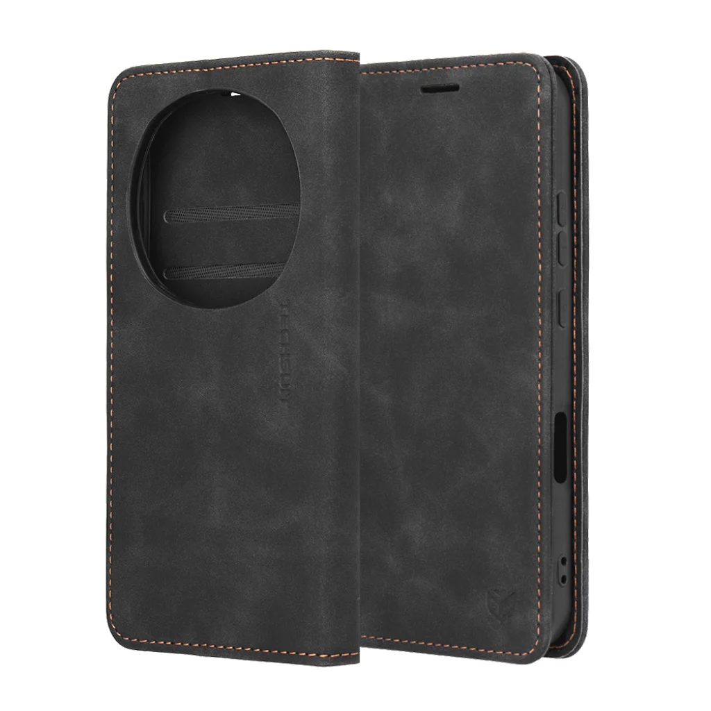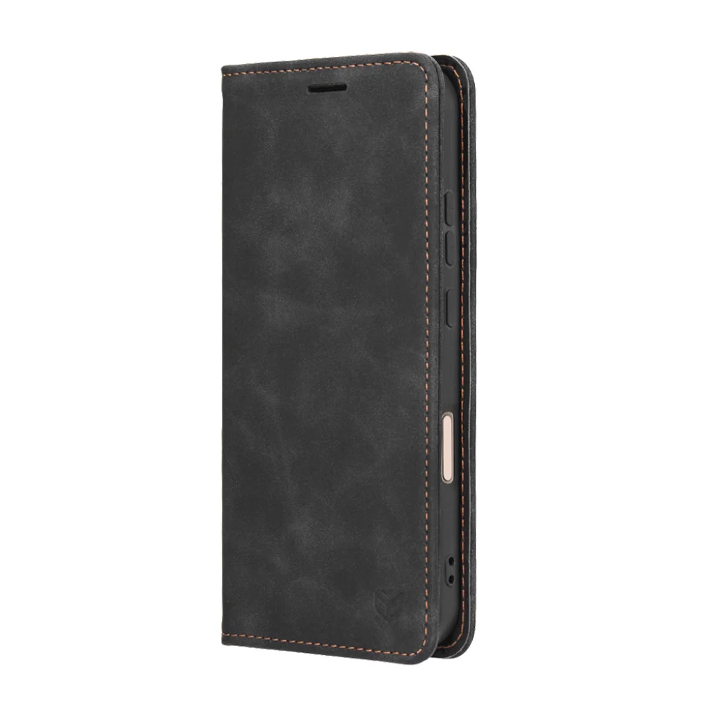 - Minőségi kivitelezés: A tok strapabíró, műbőr anyagból készült, amely kellemes tapintású és elegáns, enyhén antikolt megjelenést kölcsönöz. A felület finom textúrája prémium érzetet nyújt, miközben ellenáll a mindennapi kopásnak.