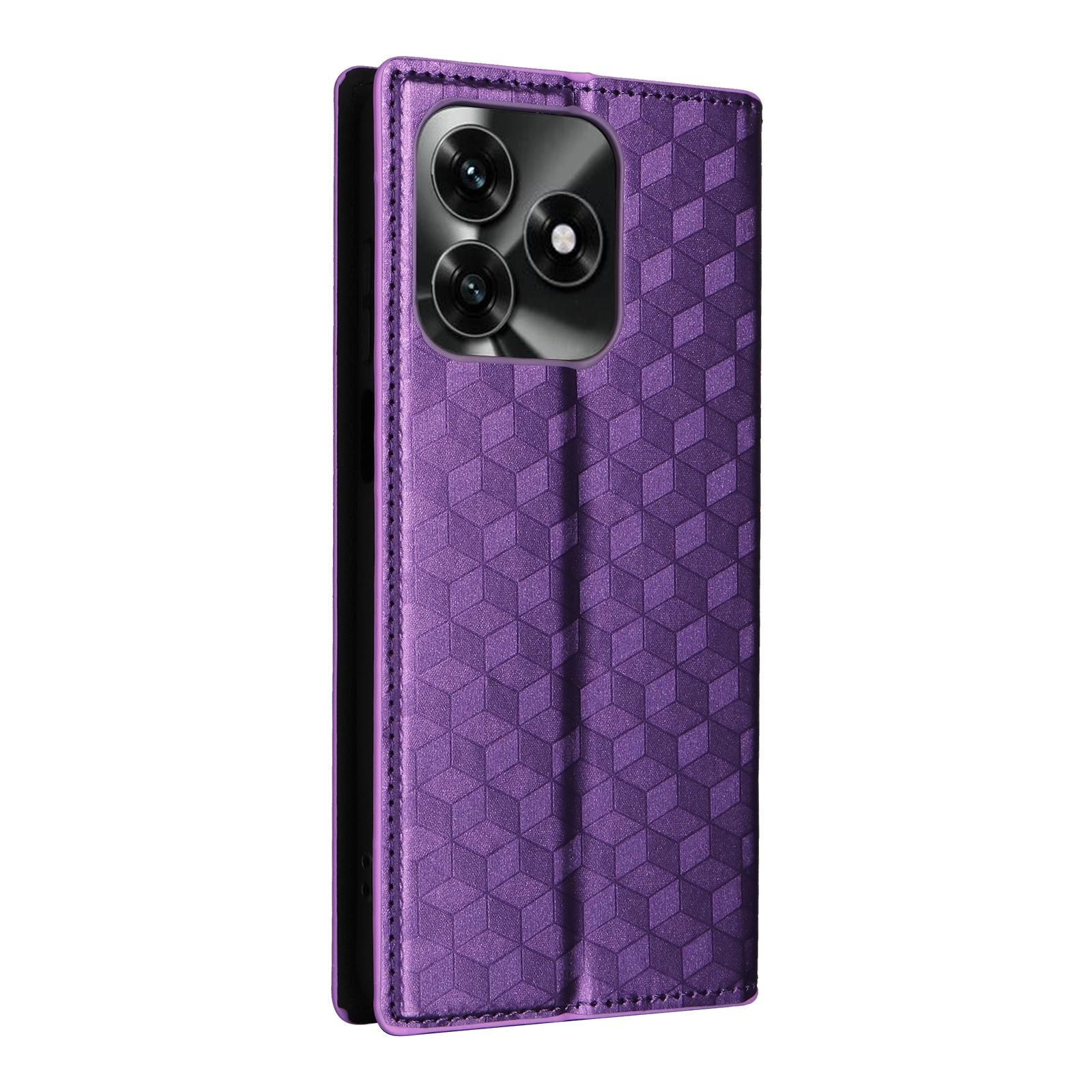 Honor X5c Plus kockás textúrájú, lila flip telefontok – Stílus és védelem egyben