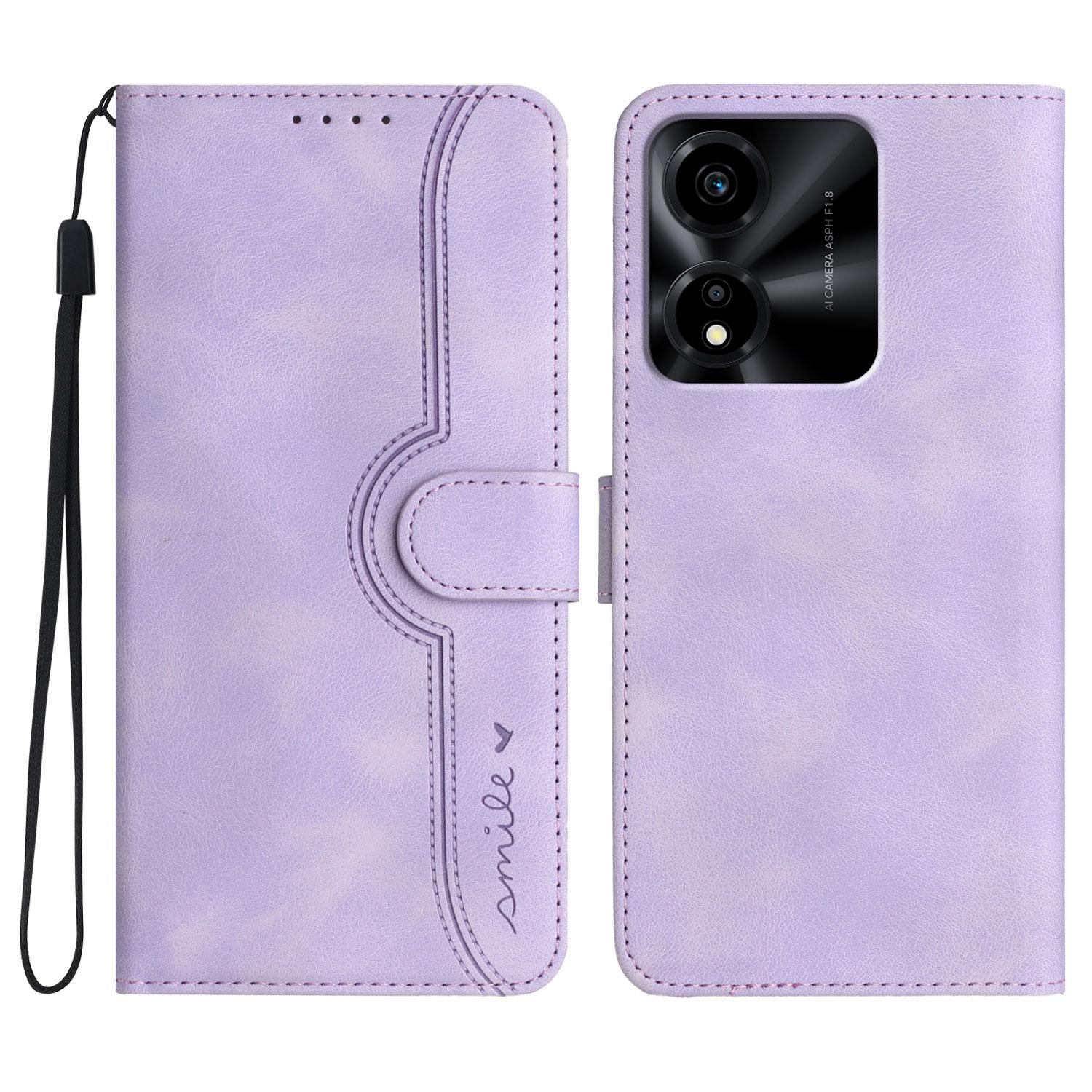 Honor X5c Plus – szív mintás, bőrhatású fliptok lila színben