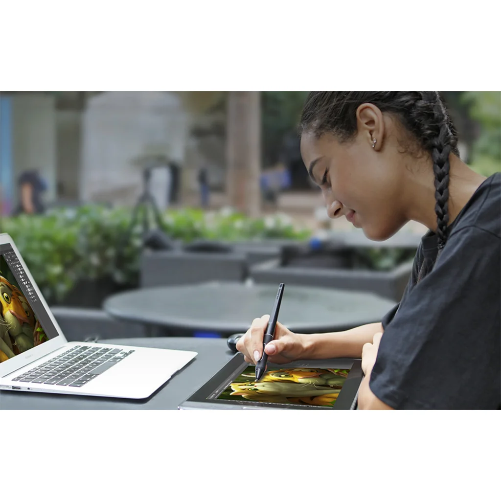 A tokon található 4 programozható gomb és az érintősáv (touch bar) gyors hozzáférést biztosít a gyakran használt funkciókhoz, például az ecset méretének módosításához, a vászon nagyításához és a visszavonáshoz. A tartozék az ST300 összecsukható állvány is, amely hat dőlésszöget kínál - 14,5°-tól 45°-ig -, így testre szabhatja a képernyő helyzetét. Ez biztosítja, hogy a többórás munka sem terheli meg indokolatlanul a csuklót.