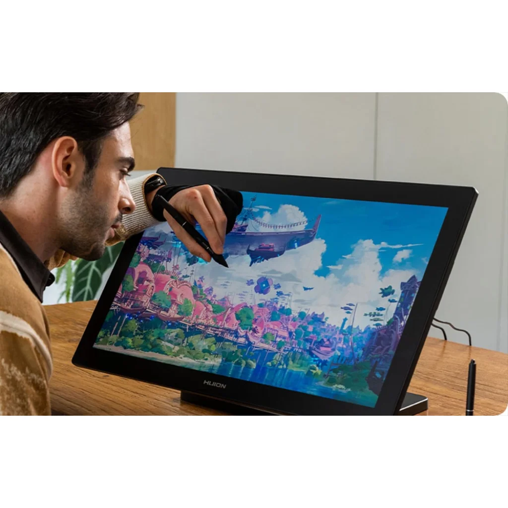 A Huion Kamvas Pro 24 (Gen 3) egy korszerű professzionális eszköz, amelyet olyan grafikusok, illusztrátorok és 2D/3D kreatívok számára terveztek, akik értékelik a magas képminőséget, a tökéletes színvisszaadást és a nagy formátumú munka kényelmét. A nagyméretű, 23,8 hüvelykes képernyő 4K UHD felbontással, teljes laminálással, Quantum Dot technológiával és a Canvas Glass 3.0 legújabb generációjával ez az eszköz tökéletesen megfelel a kreatív iparágak számára, páratlan digitális rajzolási és grafikai szerkesztési élményt nyújtva.
