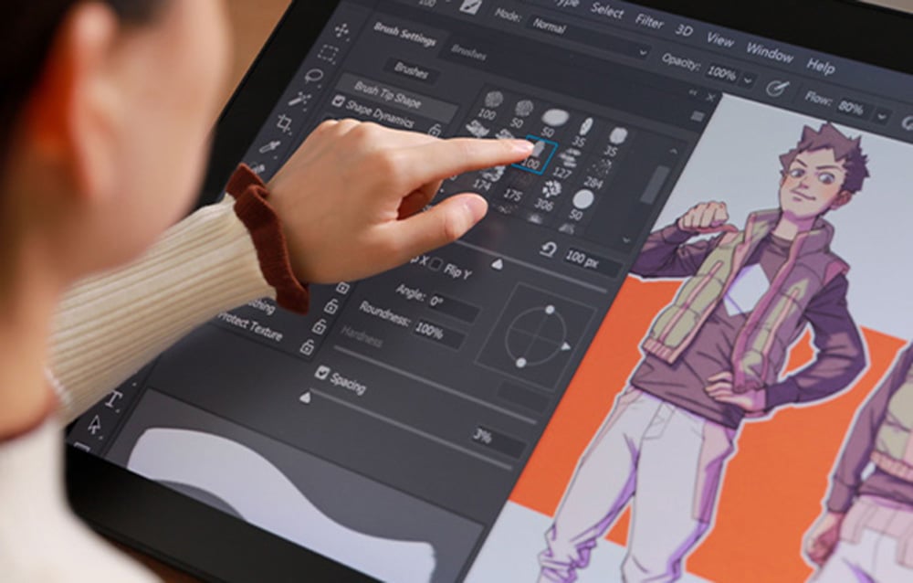 A Huion Kamvas Pro 27 egy zászlóshajó 4K UHD grafikus tábla, amely a stúdió precizitást kivételes kényelemmel ötvözi. A 27 hüvelykes IPS-kijelző 3840 × 2160-as felbontással és 300 nits fényerővel lenyűgöző képélességet és részletességet kínál. A széles, 178°-os betekintési szögek és az 1000:1 kontrasztarány minden projektet tisztává tesz, perspektívától függetlenül. Az új Canvas Glass AG maratott üveg matt felületű és teljes laminálású üveggel ellátott Canvas Glassnak köszönhetően a képernyőn való rajzolás a papírral való természetes érintkezést idézi, a csökkentett tükröződés pedig növeli a kényelmet még órákon át tartó munka közben is.