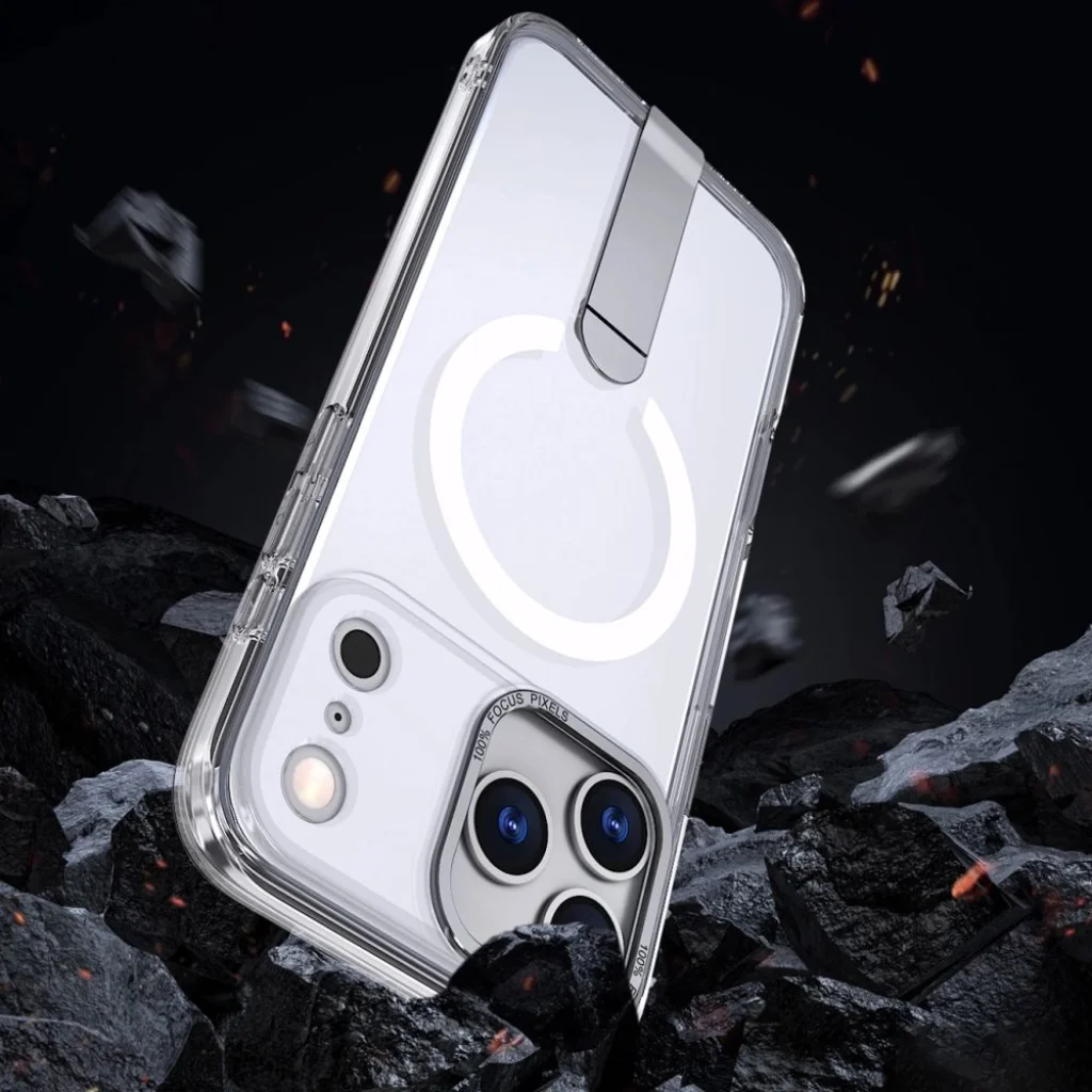 ~ Teljesen kompatibilis a MagSafe-rendszerrel A beépített mágneses gyűrű stabil csatlakozást biztosít a MagSafe tartókhoz és töltőkhöz. Kettős anyagszerkezet a védelemért Az erős akril és a rugalmas TPU kombinációja hatékonyan védi a készüléket a mechanikai károsodások ellen. Beépített 360°-os állvány Az állítható állvány lehetővé teszi a kényelmes filmnézést, videobeszélgetéseket és az alkalmazásokkal való munkát. Ellenálló a karcolásokkal és kopással szemben Az akril hátlap kopásálló és segít a tok tiszta megjelenésének hosszú távú megőrzésében. Illeszkedik a Samsung Galaxy S26 Plus-hoz A precíz kivitelezés biztosítja a szabad hozzáférést a telefon összes portjához és gombjához.