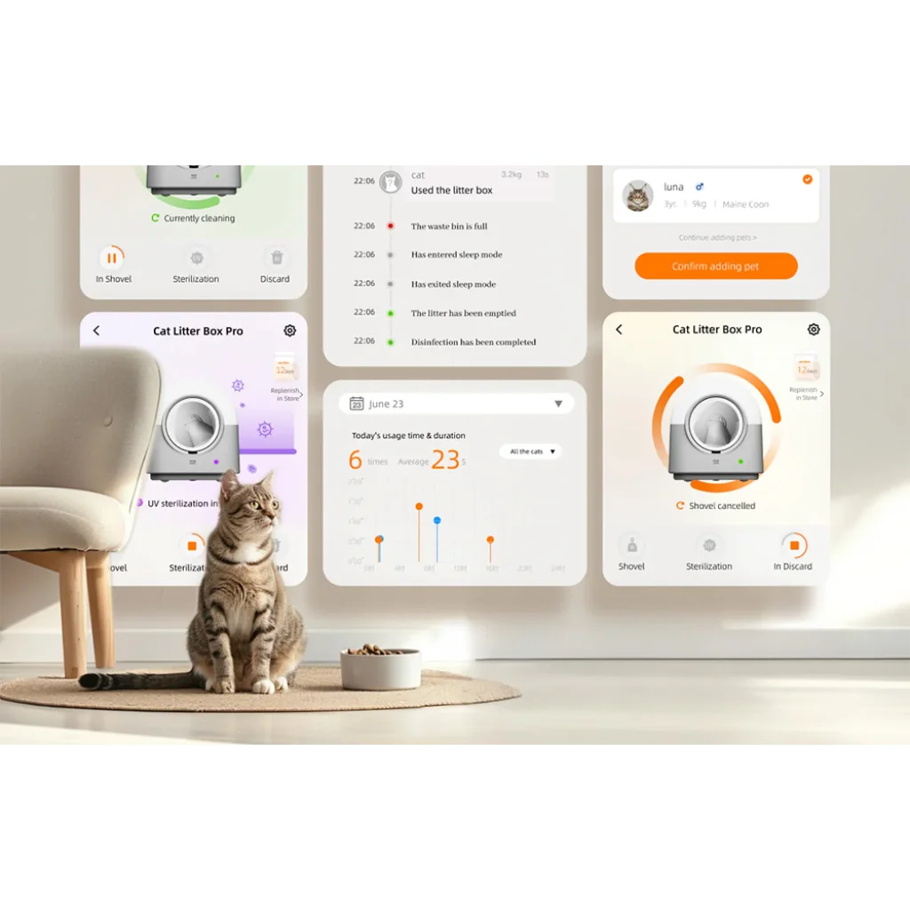 Az intelligens öntisztító PRO alomtároló HHOLove CT-TYW maximális kényelmet biztosít mind a háziállatnak, mind gondozójának. Az automatikus tisztítórendszer, a beépített szagtalanító mechanizmus és a háziállat egészségi állapotának az alkalmazásból történő nyomon követésének lehetősége teljesen átalakítja a háziállat gondozásának hagyományos módját. A nagy kapacitású (6 l) hulladéktartálynak köszönhetően a készülék akár 12 napig tartó karbantartásmentes használatot tesz lehetővé, és több macskával rendelkező otthonok számára is tökéletes lesz.