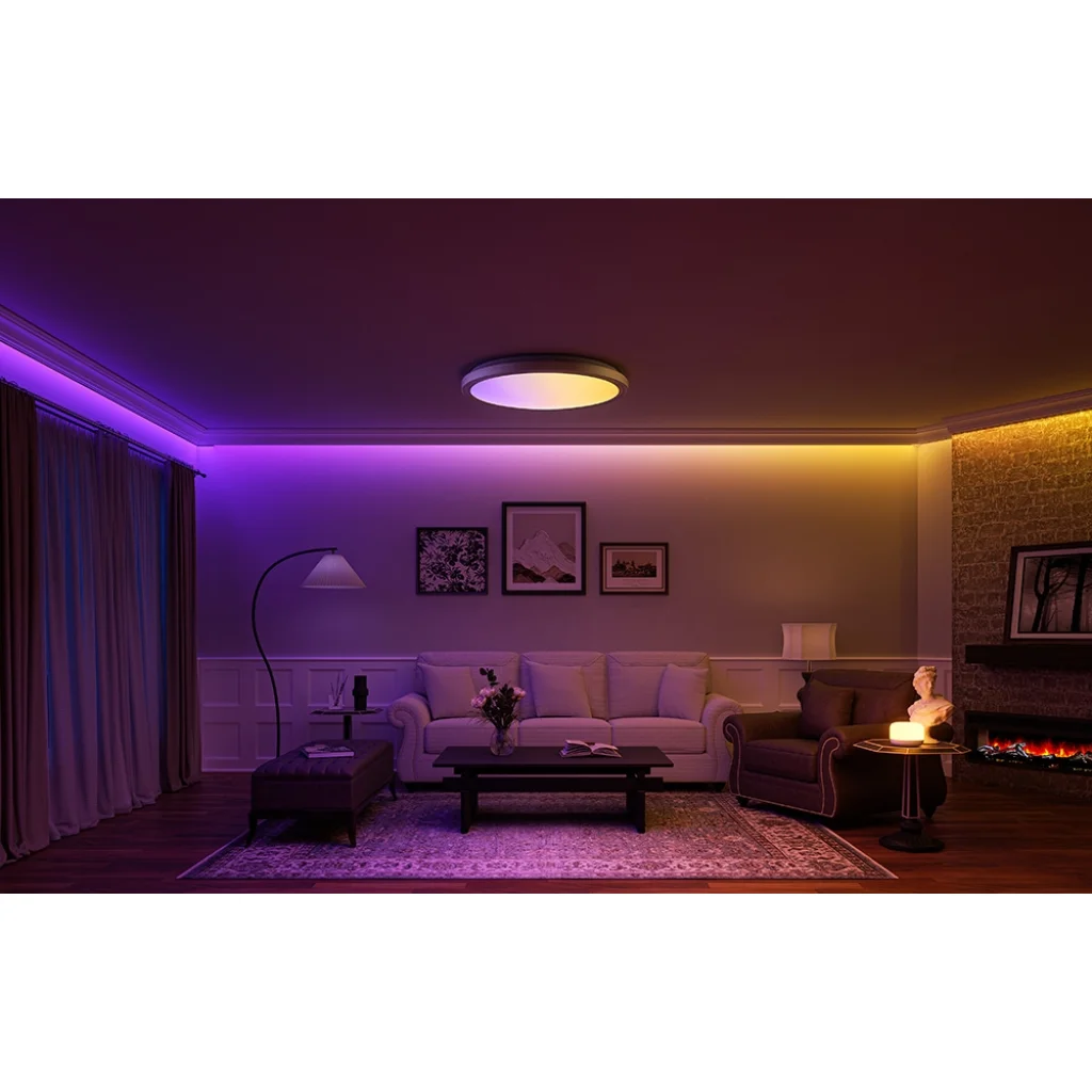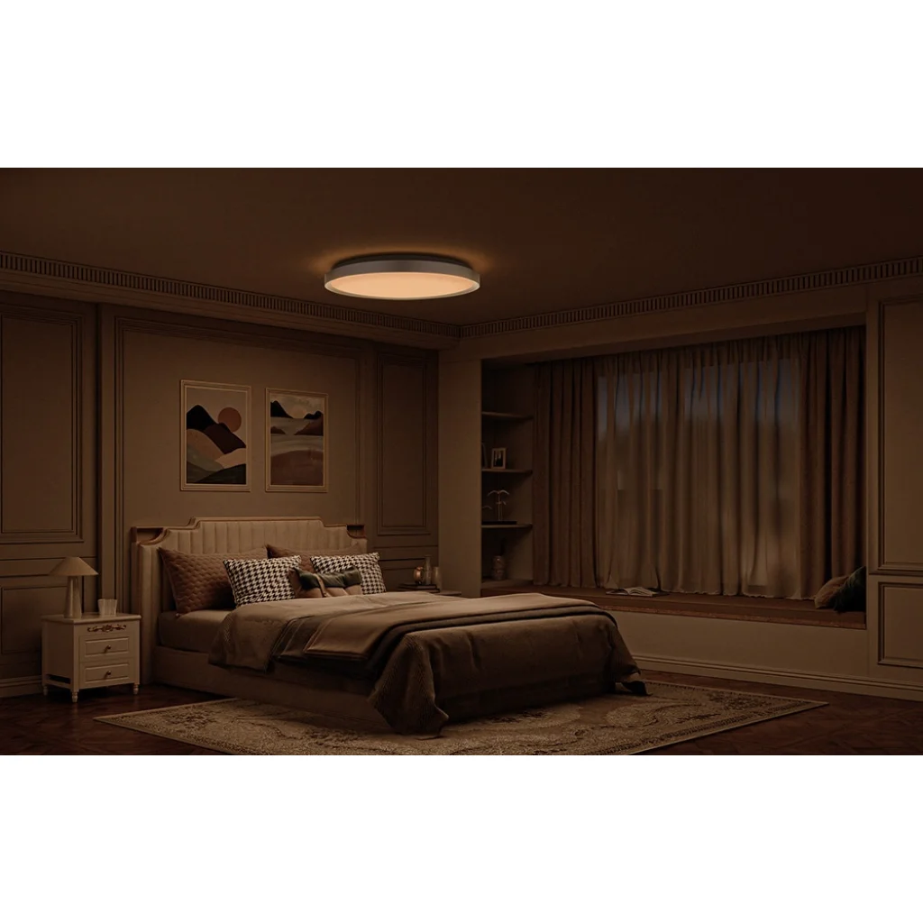 A Yeelight Jupiter D C500 egy intelligens mennyezeti lámpa, amely fokozatmentesen állítható fényerővel és színhőmérséklettel, 16 beépített fényhatással és 16 millió szín teljes skálájával rendelkezik. Intelligens üzemmódokkal felszerelve és az intelligens otthoni rendszerekkel integrálva lehetővé teszi a kényelmes hang- és alkalmazásvezérlést. A minimalista kialakítású, csiszolt fémkerettel kombinálja az eleganciát a tartóssággal, a gondosan átgondolt tervezés pedig kristálytiszta, vakításmentes fényt, magas színvisszaadási indexet, biztonságot és villogásmentességet biztosít, gondoskodva a kényelemről és a szem védelméről, miközben alacsony energiafogyasztást biztosít. Válassza a Yeelightot még ma, és nézze meg, mekkora különbséget jelenthet a megfelelő otthoni világítás!