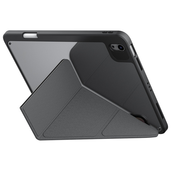 A tok levehető Y-hajtású fedelet tartalmaz, lehetővé téve az iPad vízszintes és függőleges helyzetbe állítását is. Ez kényelmes, kéz nélküli használatot biztosít – a tökéletes megoldás filmnézéshez vagy munkához. A mágneses zár biztosítja a stabilitást és a biztonságot, míg a beépített Apple Pencil tartó könnyű stylus tárolást tesz lehetővé.
