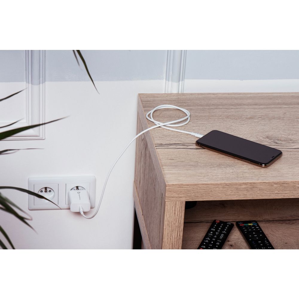 Erősítő falitöltő PD és QC 4.0 gyors töltési funkcióval. Az Apple iPhone 12 készülékekhez tervezve. Tartalmaz egy Lightning kábelt. A Forcell töltő egy kompakt kiegészítő, amely elfér egy táskában vagy hátizsákban. Tartós, biztonságosan használható anyagokból készült, kényelmes és praktikus használatot biztosít, és ellenáll az ütődéseknek és sérüléseknek. A mellékelt hosszú (1,2 m) Lightning-USB type C kábel lehetővé teszi, hogy kényelmesen dolgozzon okostelefonjával töltés közben. Specifikáció: Model: TFK-TC-20WPD Bemeneti feszültség: 110-240V AC, Bemeneti frekvencia: 50-60Hz, 0.5A Kimeneti feszültség: 5V 3A / 9V 2.2A Kimeneti teljesítmény: 20W Munkavégzés közbeni átlagos hatékonyság: > 85.46% Alacsony terhelés alatti hatékonyság (10%): > 75.46% Üresjárati teljesítményfogyasztás: <0.1W Aljzat: USB-C Kábel: USB-C-Lightning. Fejlessze vállalkozását Forcelllel! Tekintse meg, mit nyerhet, mint a márka hivatalos forgalmazója. Kérdése van? Lépjen kapcsolatba az értékesítési képviselőjével, aki részletesen tájékoztatja az ajánlatról.