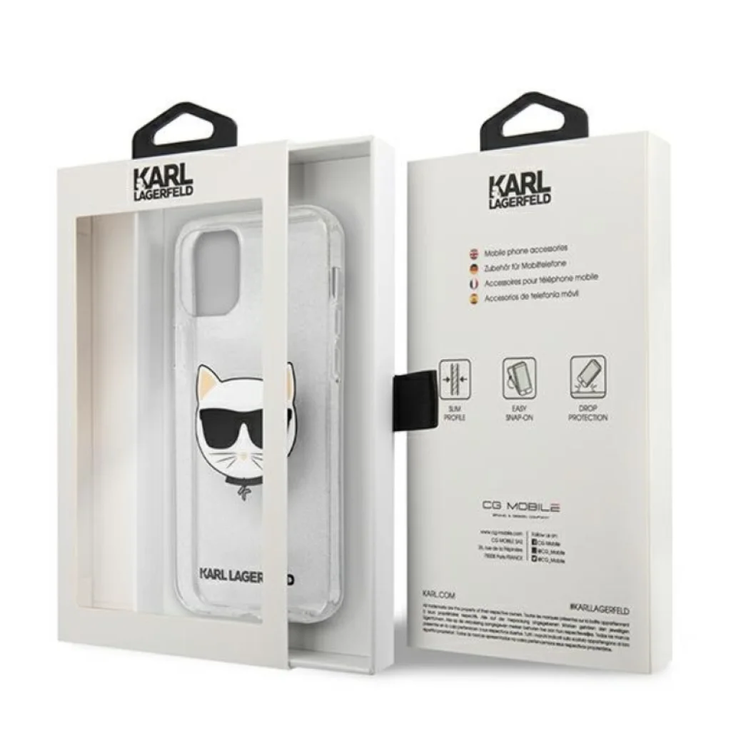 A Karl Lagerfeld Choupette Head Glitter tok a Choupette macskát ábrázolja. A hátlap TPU-ból, az élek pedig rugalmas poliuretánból készülnek, ami megkönnyíti a tok felhelyezését. Védelmet nyújt a készülék véletlenszerű karcolódása ellen, és eltakarja a telefon gombjait. A konstrukció hozzáférést biztosít a telefon összes funkciógombjához, aljzatához és portjához, anélkül, hogy korlátozná annak funkcionalitását. A kijelző körül kissé megemelt élek további védelmet nyújtanak a karcolások ellen. A tok áttetsző és kissé csillogó a beágyazott csillogásnak köszönhetően. Vezeték nélküli töltéssel kompatibilis tok.