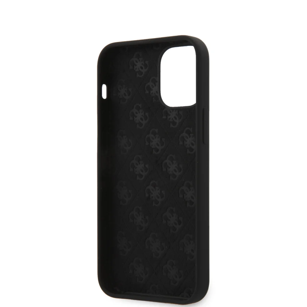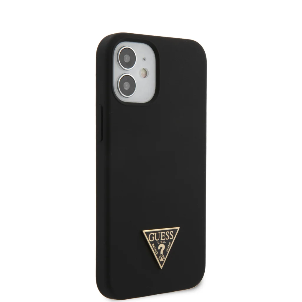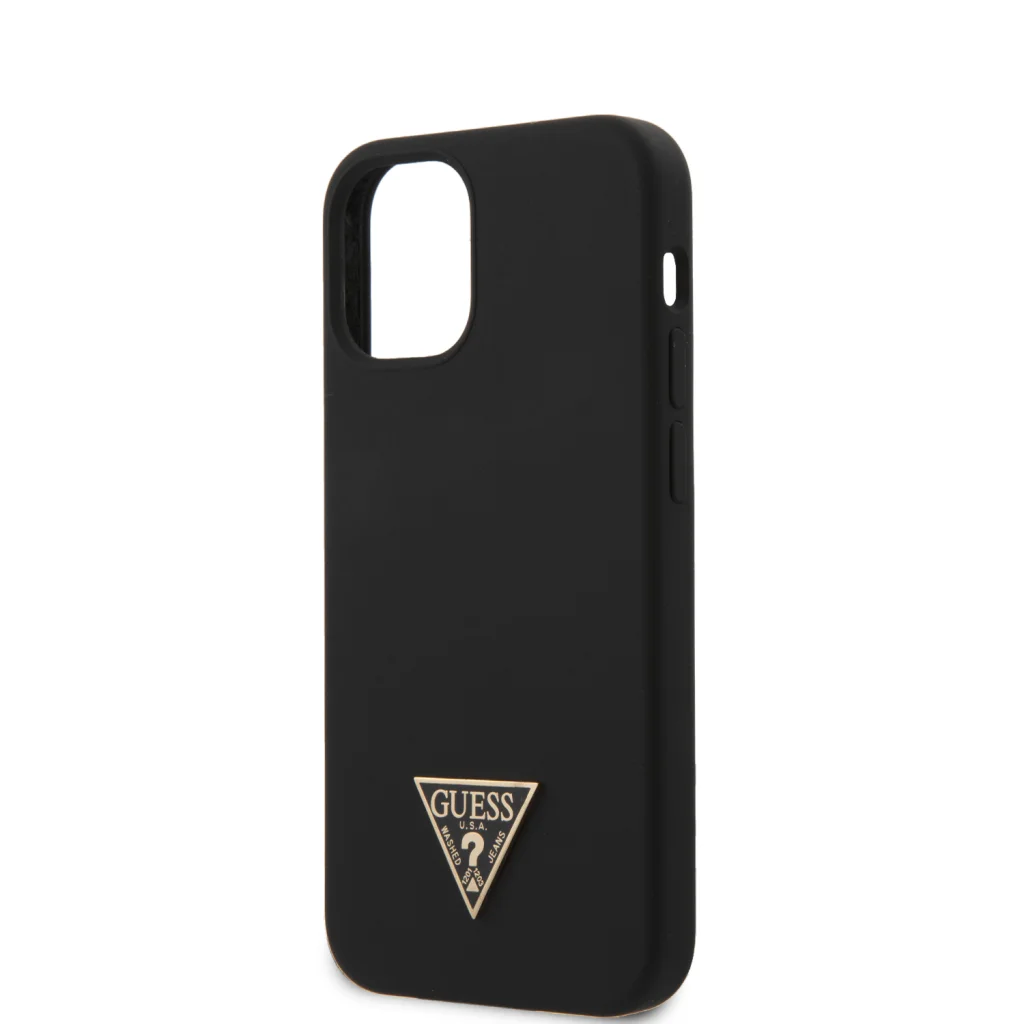 iPhone 12 mini Guess GUHCP12SLSTMBK Metal Triangle szilikon tok fekete