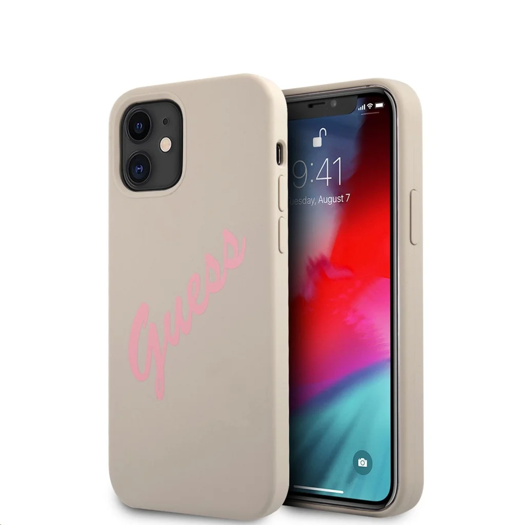 iPhone 12 mini Guess GUHCP12SLSVSGP Silicone Vintage tok szürke