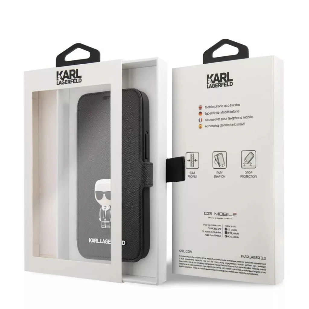 A világszerte ismert Karl Lagerfeld divattervező által kreált fliptok. Egyedi Saffiano textrúája teszi igazán magával ragadóvá. Prémium minőségű PC,TPU és környezetbarát bőr anyaghasználattal készült fliptok, kártyatartóval. Amellett hogy valóban megnyerően néz ki, kiválóan véd a mindennapos használatból származó sérülésekkel szemben. Előlapján fém 3D logóval.