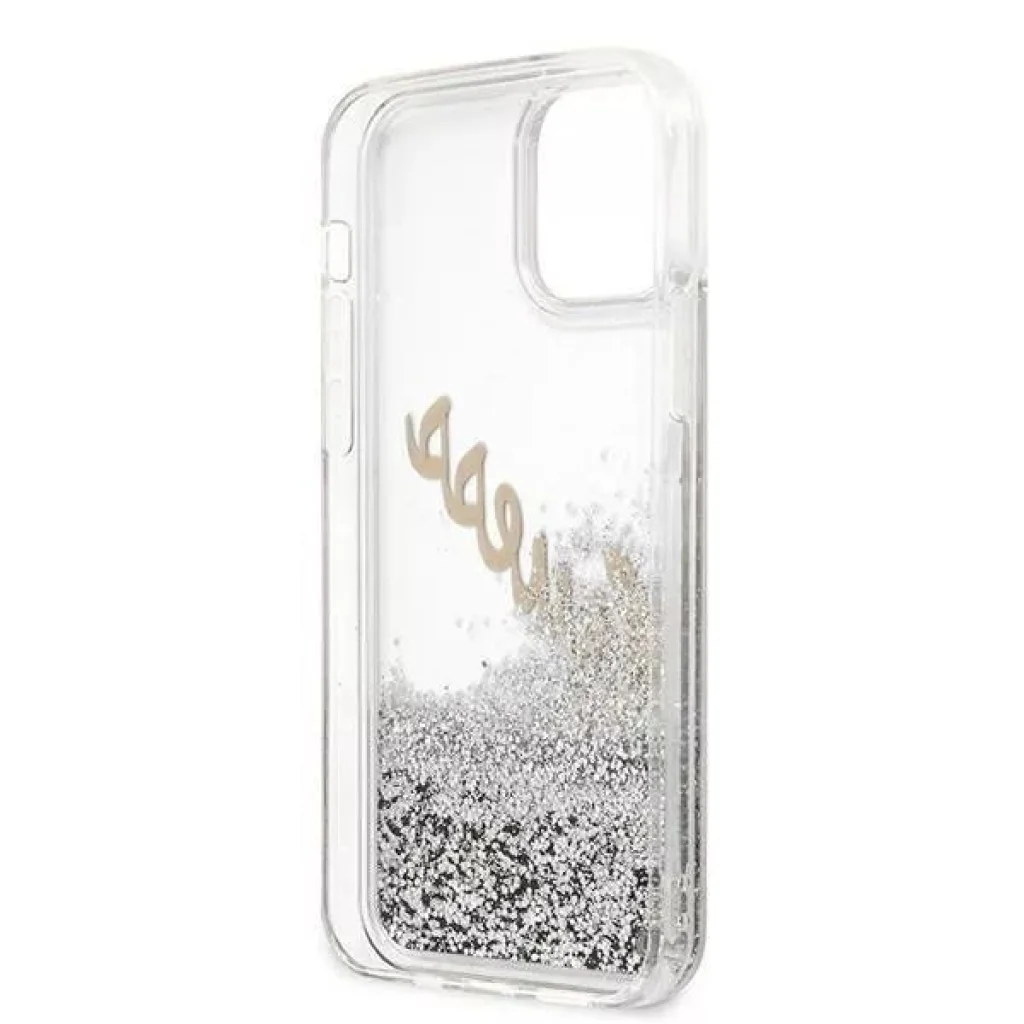 iPhone 12 Pro MAX Guess GUHCP12LGLVSSI Liquid Glitter Vintage PC tok ezüst