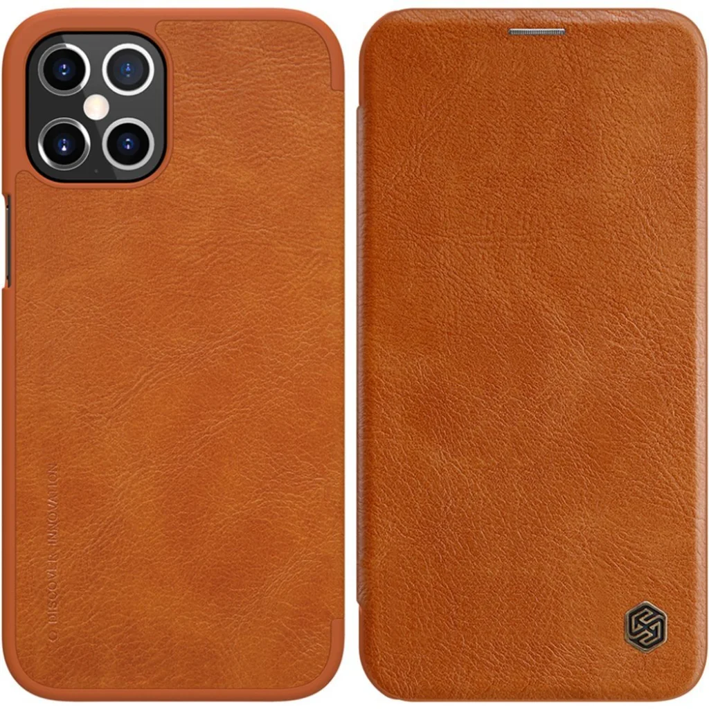 iPhone 12 Pro MAX Nillkin Qin bőr fliptok barna