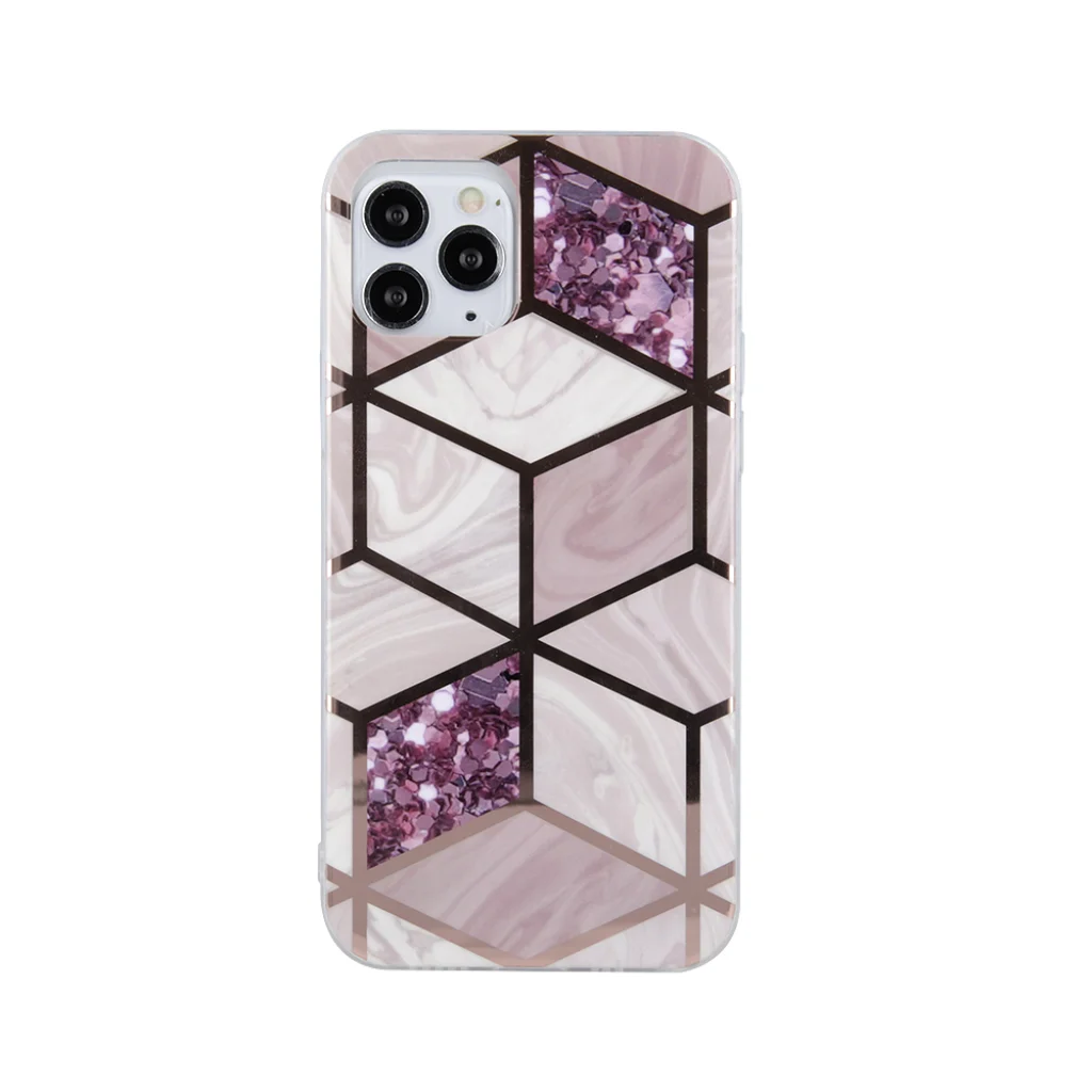 iPhone 13 Marmur tok geometrikus mintázattal rózsaszín flitteres