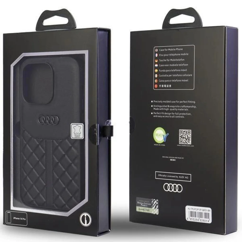 Az Audi Eredeti Bőr sorozat tokja a legapróbb részletekre való odafigyeléssel és tökéletes illeszkedéssel készült a telefonhoz. A tok magja hőre lágyuló poliuretánból készült, amely ellenáll a sérüléseknek és egyszerű összeszerelést biztosít. A tok felső rétege a legkiválóbb minőségű természetes bőrrel van bevonva, amely nemcsak védelmet nyújt, hanem kellemes használati élményt is biztosít. A kollekció jellegzetessége a dombornyomott geometriai motívum, amely modern megjelenést kölcsönöz. A karcsú kialakítás nem teszi vaskossá a készüléket, megőrzi annak elegáns megjelenését. A tok hozzáférést biztosít a telefon összes funkcióbillentyűjéhez, csatlakozójához és portjához, nem korlátozva annak funkcionalitását, így teljes mértékben használhatja okostelefonját. Termékjellemzők: - Karcsú kialakítás - Anyag: TPU / Természetes bőr - Véd a telefon hátoldalának és oldalainak karcolódása ellen - Rombusz motívum - Audi logó - Hozzáférés a telefon összes funkcióbillentyűjéhez, csatlakozójához és portjához - Hivatalosan licencelt termék az Audival.