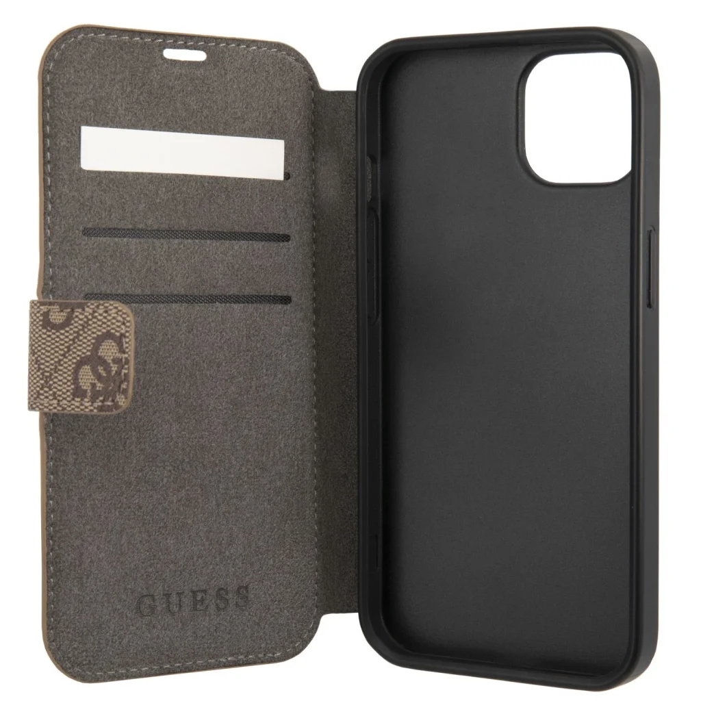 A Guess márkanév évtizedek óta kitűnő formatervezésű és legmagasabb minőséget képvisel. Nyomtatott 4G logóval rendelkezik a fényűző Saffiano textúrán. A tok védi az egész eszközt, hozzáférést biztosítva minden porthoz és gombhoz, és két belső kártyatartóval rendelkezik.