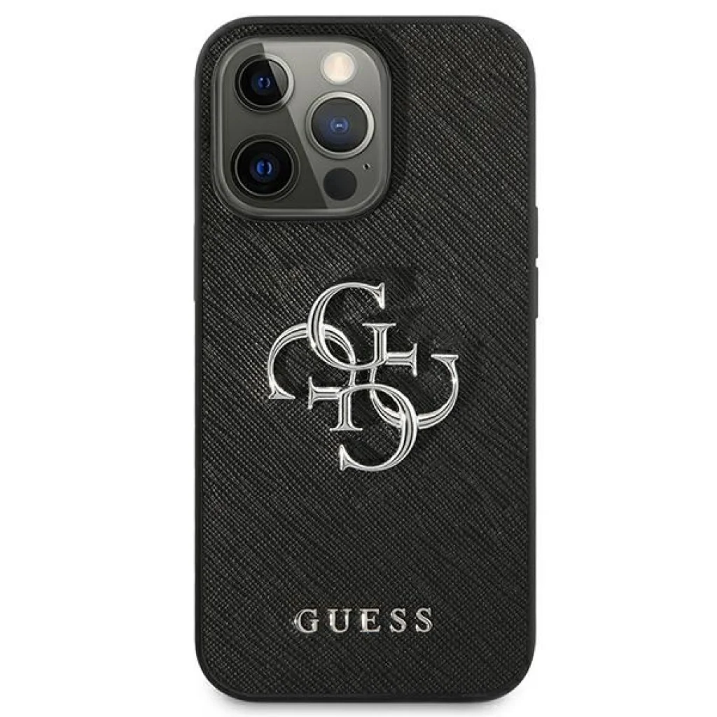 iPhone 13 Pro Guess GUHCP13LSA4GSBK Saffiano Metal Logo tok 4G fekete