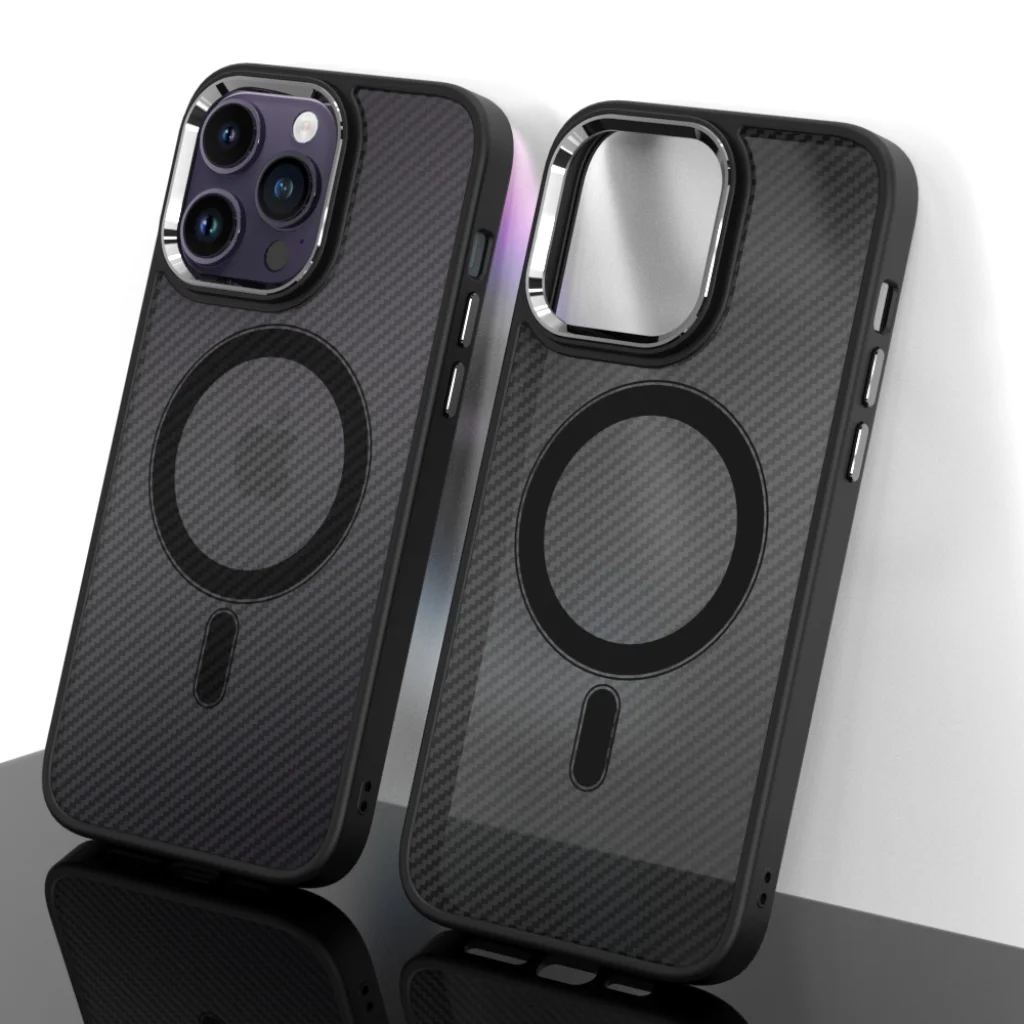Magnetic Carbon tok- egy olyan tok, amely tökéletes extrém körülményekhez. A tok védi az okostelefon hátulját, oldalait és képernyőjét. A beépített mágneseknek köszönhetően a tok kompatibilis az Apple MagSafe tartozékokkal. Hibrid kialakítás (rugalmas TPU oldalak + átlátszó kemény PC hátlap). Szénszálas textúra. Fényképezőgép lencsék védelme. Megerősített sarkok az ütések elnyelésére. A kiálló élek további képernyővédelmet nyújtanak. Szükséges kivágások az aljzatokhoz és a kamerához. A beépített gombok megakadályozzák, hogy por és szennyeződés kerüljön a ház alá. Töltse fel telefonját anélkül, hogy kivenné a tokból.