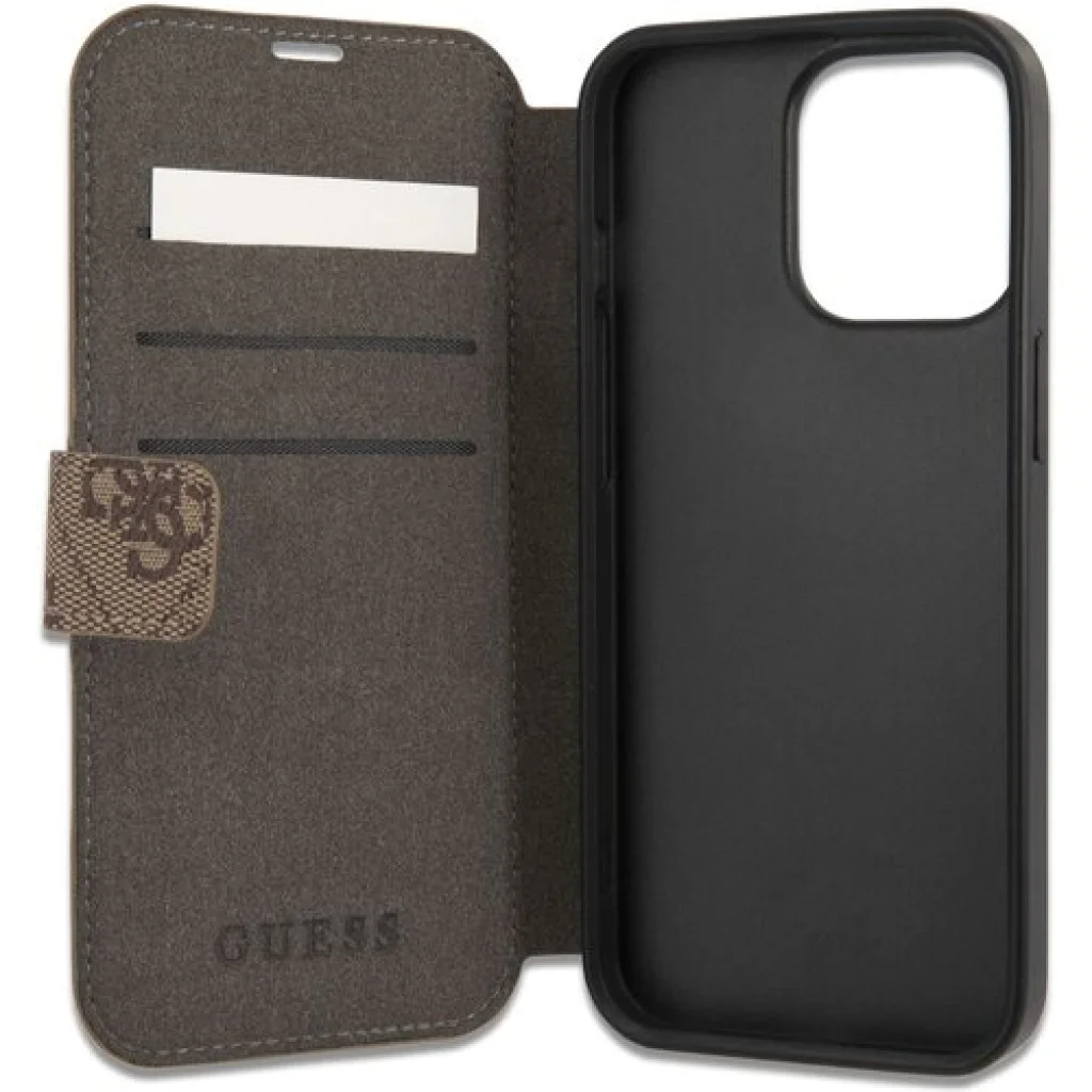 A Guess márkanév évtizedek óta kitűnő formatervezésű és legmagasabb minőséget képvisel. Nyomtatott 4G logóval rendelkezik a fényűző Saffiano textúrán. A tok védi az egész eszközt, hozzáférést biztosítva minden porthoz és gombhoz, és két belső kártyatartóval rendelkezik.