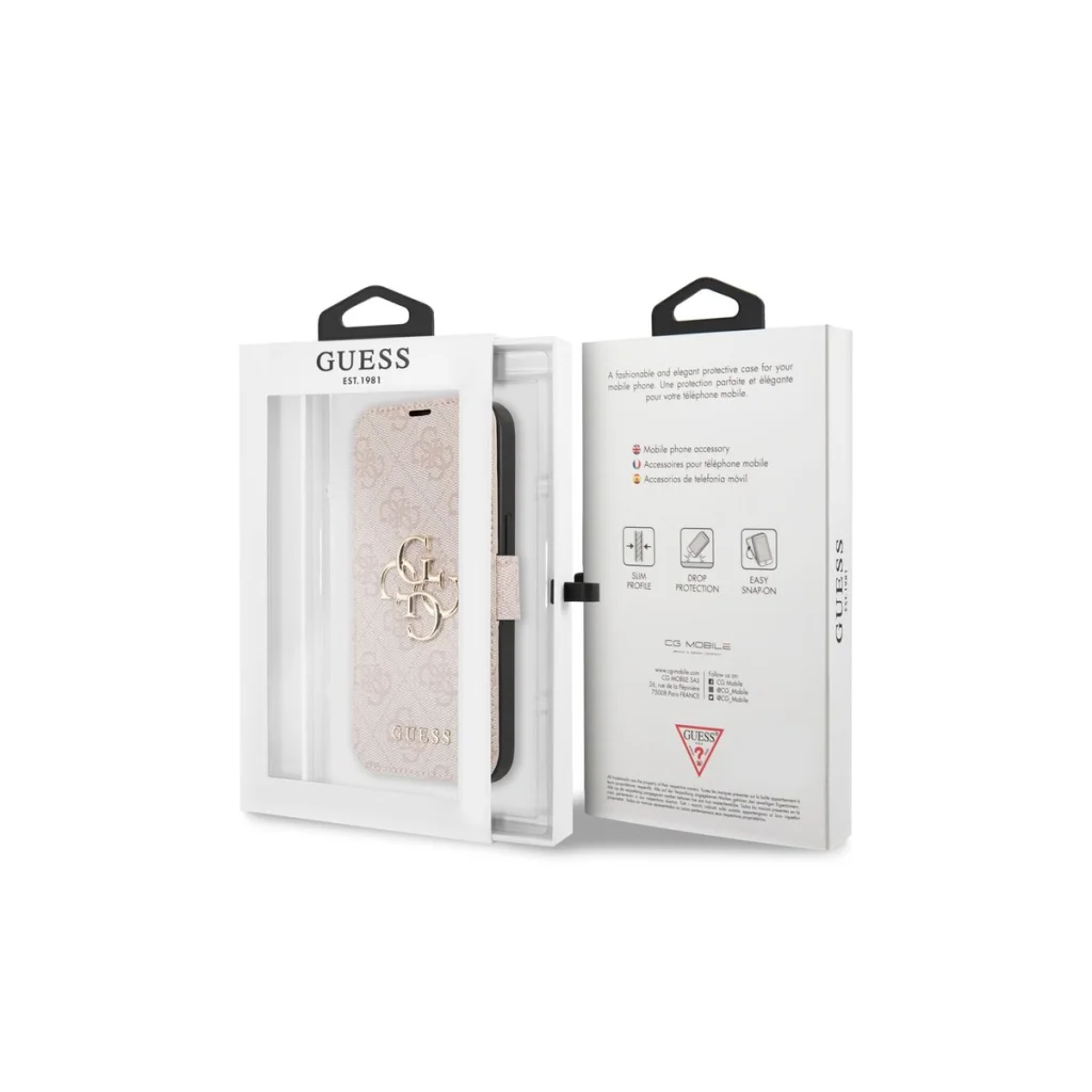 Ez a stílusos tok nem csupán egy védőburkolat, hanem egy divatos kiegészítő is. A fényűző Saffiano textúrán elegánsan jelenik meg a klasszikus 4G logó, melyet egy diszkrét fém Guess logó egészít ki. A rózsaszín árnyalat nőies és modern megjelenést kölcsönöz készülékednek, azonnal felismerhetővé téve a márkát és kiemelve stílusodat.