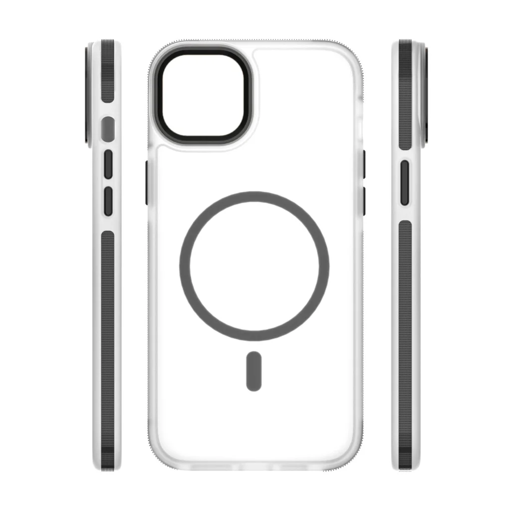 A szerkezet tartalmaz egy kiemelkedő kameratartót, amely kulcsszerepet játszik a lencsék megkarcolódásának és sérülésének védelmében. A 2300 Gs mágnes színben illeszkedik a tok többi részletéhez, lehetővé téve a kényelmes zökkenőmentes integrációt a MagSafe-szel, így könnyebb a kompatibilis töltők és kiegészítők használata.