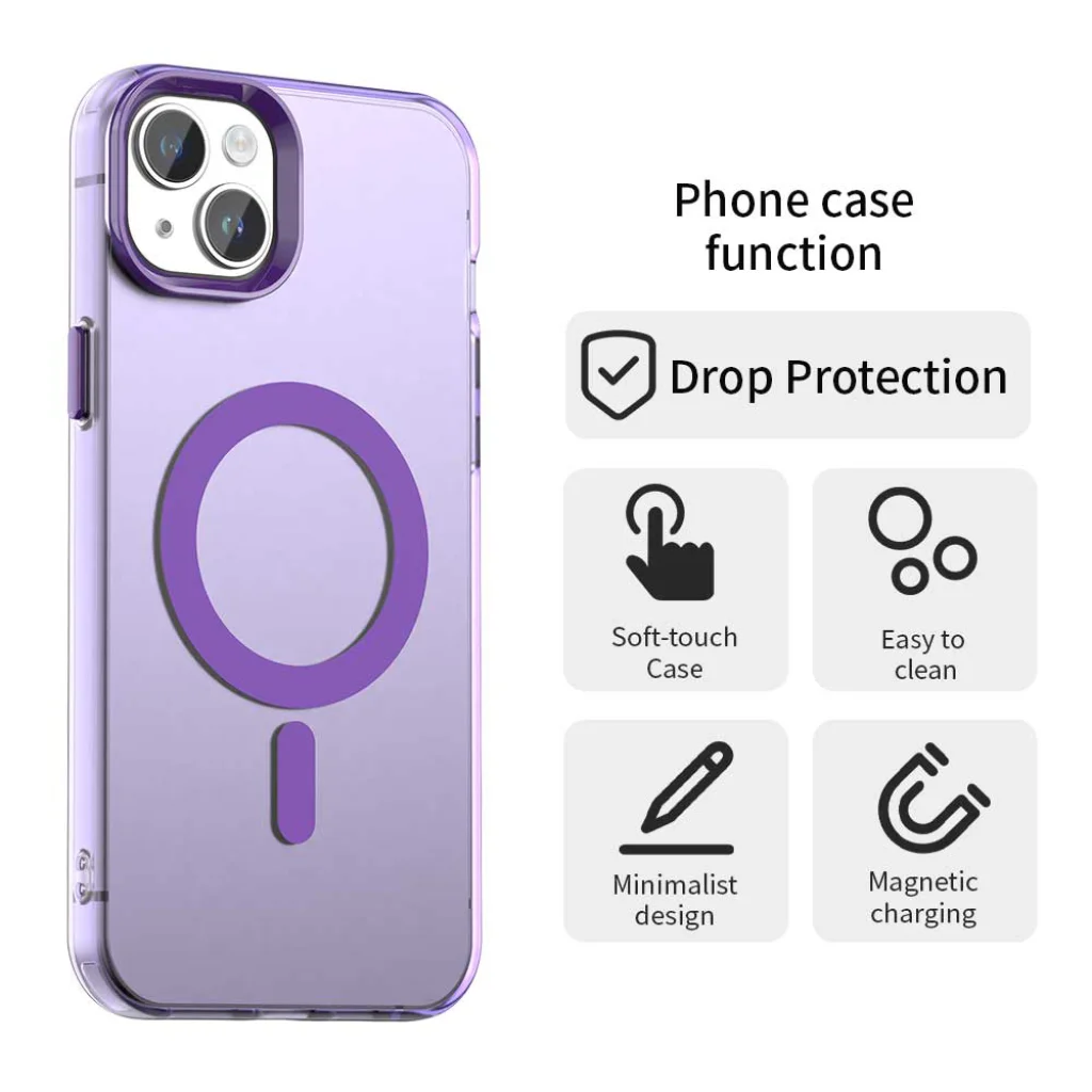 - Minimalista dizájn: A letisztult vonalak és az elegáns, áttetsző lila szín harmonikus egységet alkot, kiemelve telefonja eredeti szépségét anélkül, hogy elrejtené azt. A visszafogott megjelenés modern és stílusos kiegészítővé teszi.