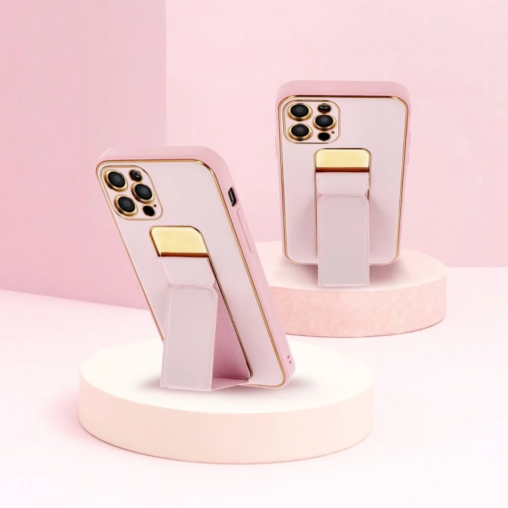 iPhone 14 Plus Forcell Leather Kickstand tok rózsaszín