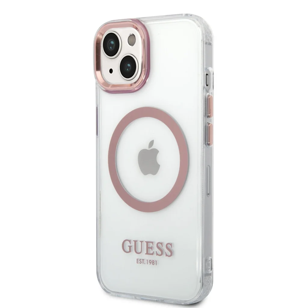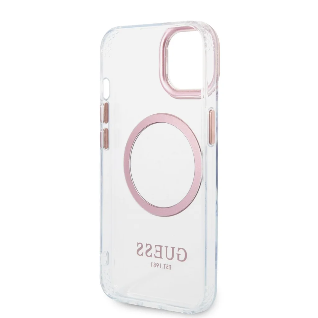 iPhone 14 Plus Guess Transparent MagSafe kompatibilis tok rózsaszín (GUHMP14MHTRMP)