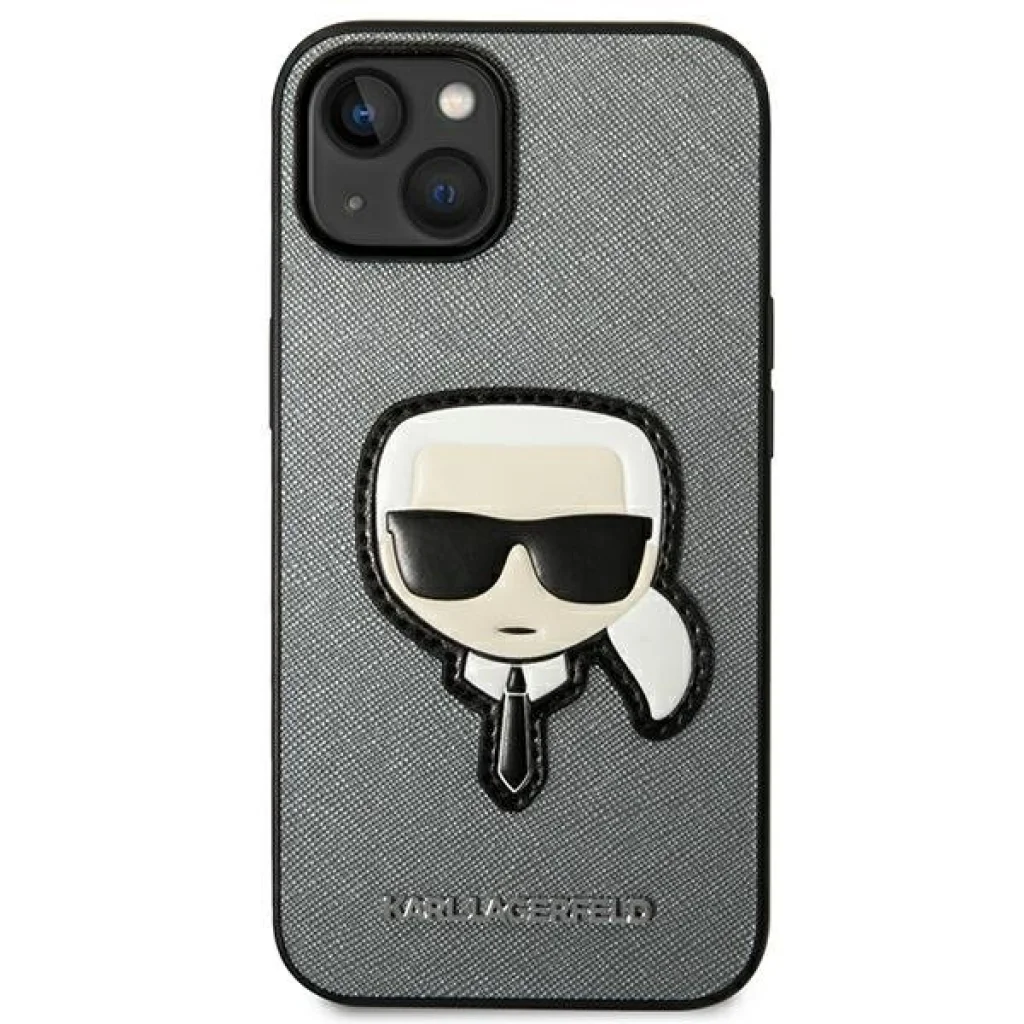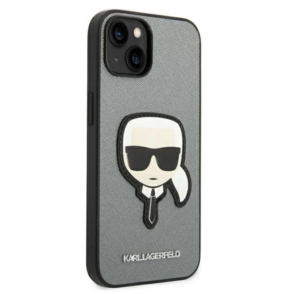 iPhone 14 Plus Karl Lagerfeld Saffiano Karl's Head tok ezüst (KLHCP14MSAPKHG)