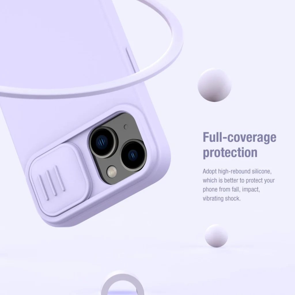 iPhone 14 Plus Nillkin CamShield Silky Magsafe kompatibilis szilikon tok fekete