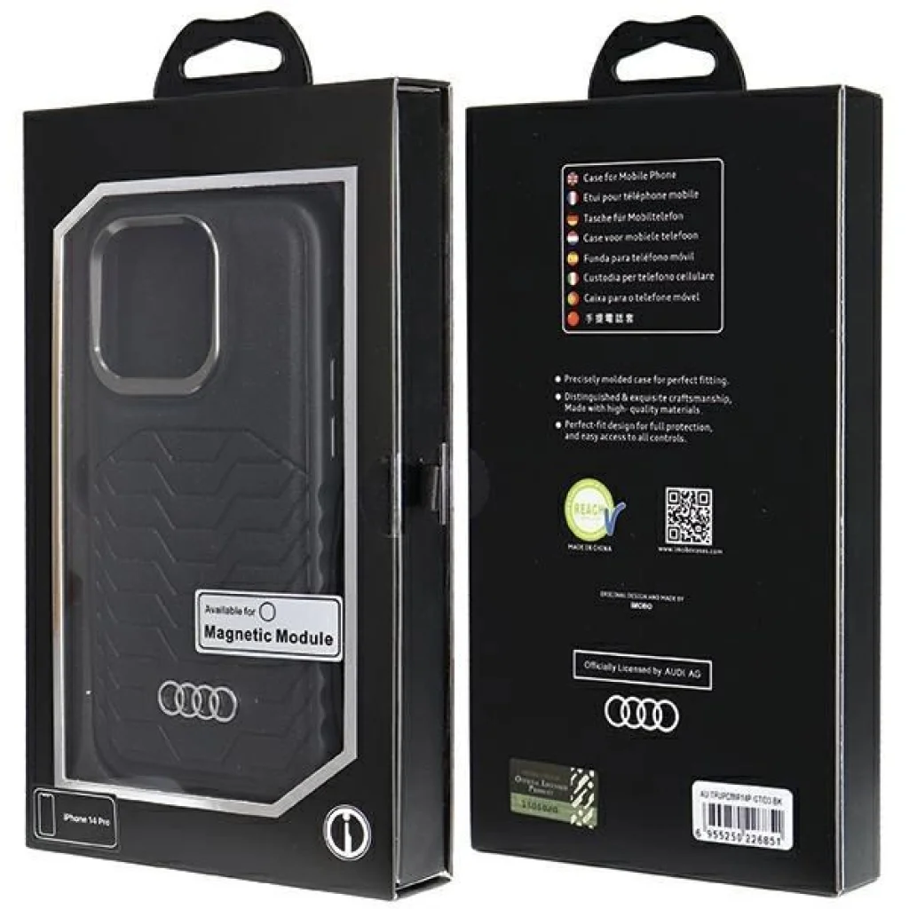 Audi szintetikus bőr MagSafe kollekció Tökéletesség a legapróbb részletekben is. Elit megjelenés. Luxus, stílus és lenyűgöző funkcionalitás. Mindegyik tulajdonság megtalálható az elit német autóipari óriás - Audi - szinte minden termékében. Érezd az Audi tökéletességét, hangsúlyozd egyedi stílusodat, és fedezz fel egy új dimenziót az iPhone-od védelmében.