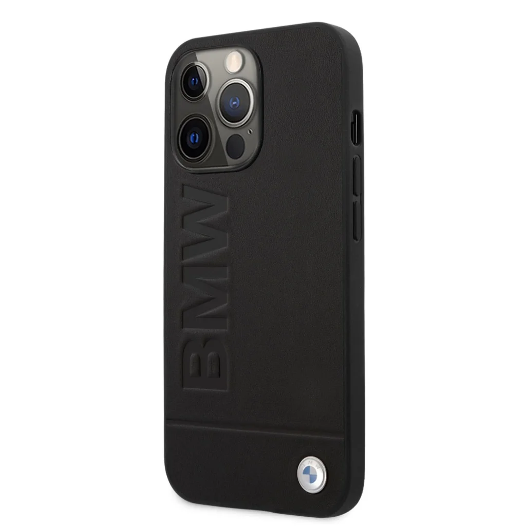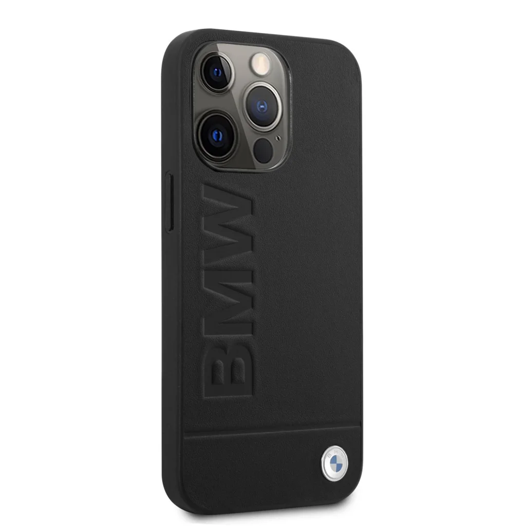 iPhone 14 Pro fekete BMW Leather Hot Stamp tok (BMHCP14LSLLBK)