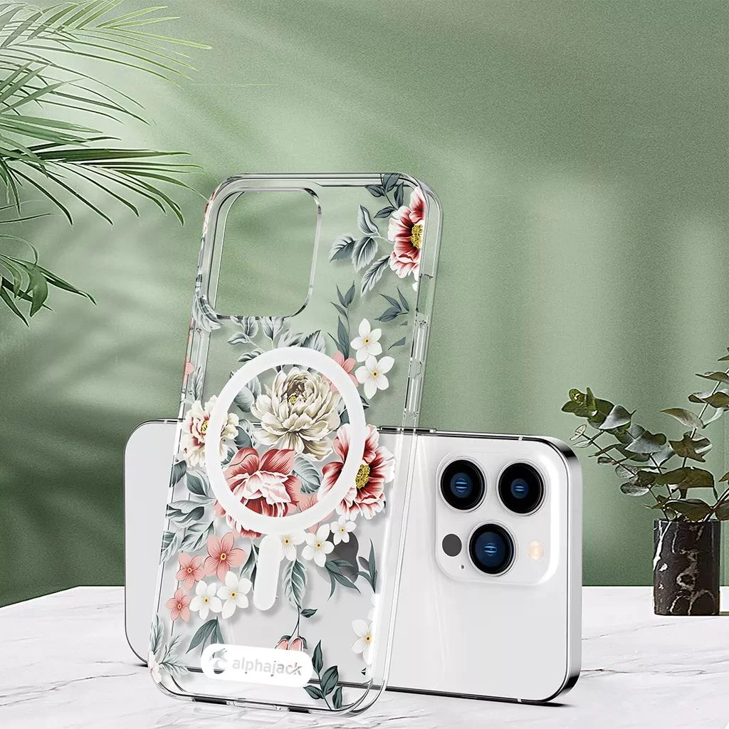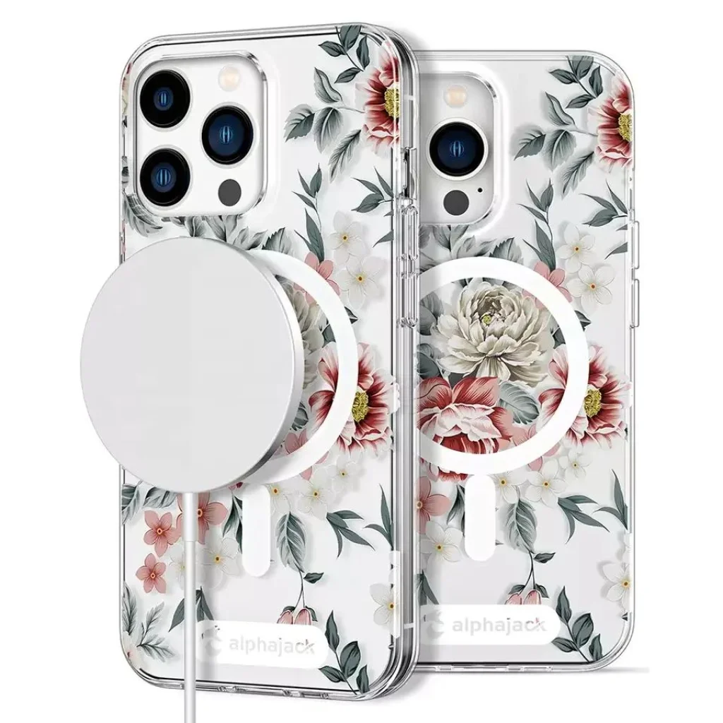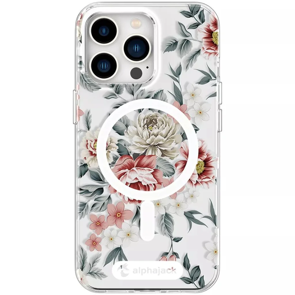 IMD technológiával készült karc- és ütésálló virágmintás telefontok puha kerettel (TPU), dupla hátlapi réteggel (PC 1.8mm). A mintázata a két réteg között található (3D hatás), így nem kopik le, hosszútávon is szép élénk hatást ad. A beépített gyűrűnek köszönhetően kompatibilis a MagSafe kiegészítőkkel. A kameránál és a kijelzőnél a keret emelt, így plusz védelmet biztosít. Jó tapintású, csúszásgátlós felülettel ellátott tok, az összes gomb és csatlakozó tökéletesen használható, a kivágások precízek. A terméket prémium mágneses ajándékdobozban szállítjuk. A csomagban megtalálható még egy nedves törlőkendő, illetve egy száraz mikroszálas törlőkendő is, így biztosan por- és zsírmentesen helyezheti el készülékét ebbe a gyönyörű virágmintás tokba. A tokon kettő védőfólia is található, belső kék színű a MagSafe gyűrűnél, illetve egy külső áttetsző. A használat előtte távolítsuk el a védőfóliákat.