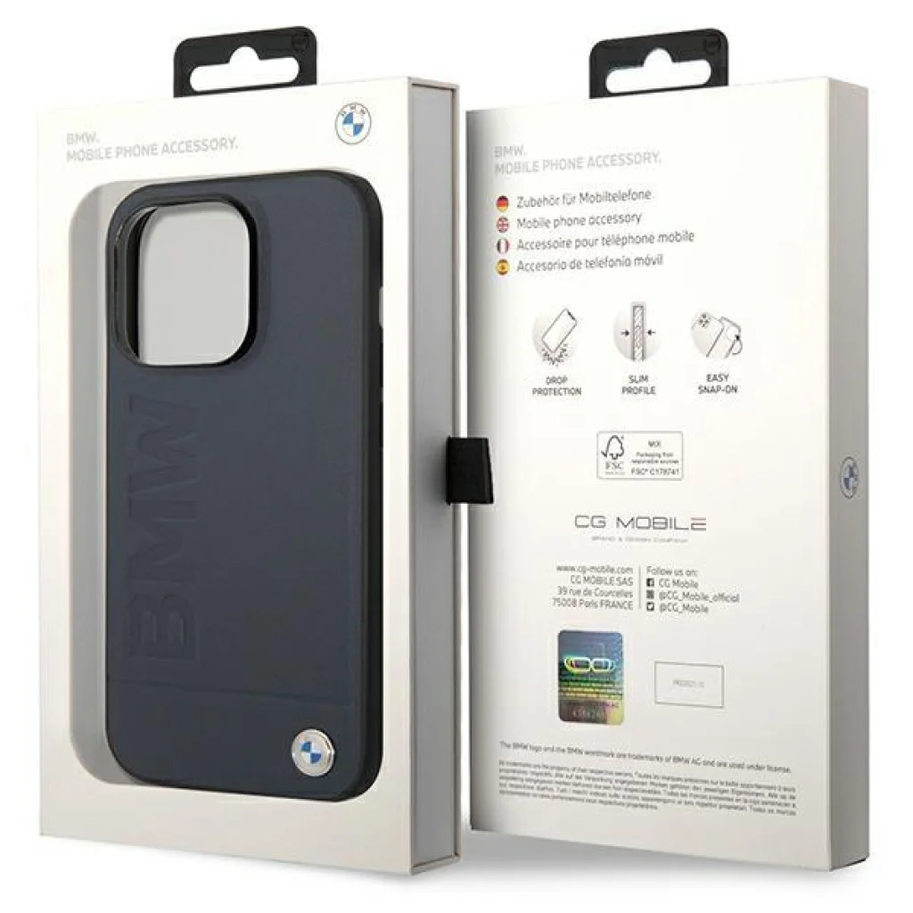 iPhone 14 Pro Max sötétkék BMW BMHMP14XSLLNA Leather Hot Stamp tok