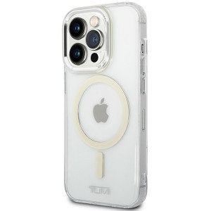 A TUMI által fémjelzett minimalista és rendkívül praktikus tok sorozat. A kollekció a legmagasabb minőségi kézművességet, valamint divatos és stílusos megjelenést kínál. Az átlátszó MagSafe kollekciót azok számára tervezték, akik egyedi védelmet keresnek iPhone-juk számára. A tok gyártása IMD (In-Mould-Decoration) technológiával történik. A grafikát hőpréseléssel nyomtatják és finom TPU réteggel vonják be, amely ellenállóvá teszi a kopással szemben. A tok hátulja átlátszó polikarbonátból készült, míg szélei rugalmas poliuretánból, amely megkönnyíti a felszerelést. A tok tökéletesen kiemeli az iPhone egyedi dizájnját, és ezüst elemekkel, például a lencsék körüli kerettel, gombokkal és a Tumi logóval van díszítve. Mágneses aranygyűrűt tartalmaz, amely kompatibilis a MagSafe vezeték nélküli töltőkkel, biztosítva a gyors és egyszerű töltést. Pontos illeszkedésének köszönhetően a tok védelmet nyújt a karcolások és ütések ellen. A kiváló minőséget a TUMI logó igazolja. A termék TUMI licenc alapján készült. Gyűjtemény: Transparent MagSafe Típus: Kemény tok Anyag: TPU / PC Szín: Átlátszó Kompatibilitás: iPhone 14 Pro Max 6.7"