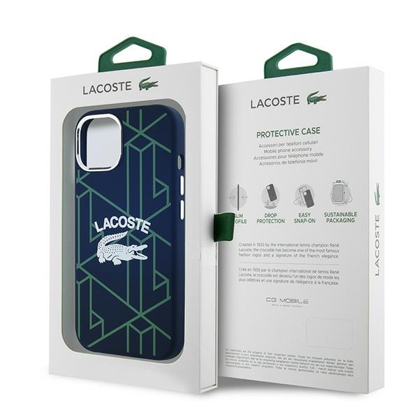 A Lacoste által tervezett telefontok az elegáns stílus és a sportos kényelem tökéletes szimbiózisa. A termék magas minőségű szilikonból készült, biztosítva a kiváló védelmet az ütésekkel és karcolásokkal szemben. A belső rész puha mikroszálas béléssel van ellátva, mely további védelmet nyújt, és komfortos érzetet biztosít. Az esztétikusan rejtett mágneses gyűrű kompatibilitást garantál a MagSafe vezeték nélküli töltővel. A tok hátulja exkluzív monogramos mintával díszített, melyet a klasszikus, régi stílusú krokodil logó egészít ki. A tok a Lacoste márka védjegyének számít, és elegáns megjelenést kölcsönöz iPhone készülékének. A tok alatt engedély alapján készült a Lacoste márka égisze alatt. Kompatibilis az iPhone 15/14/13 6.1" készülékekkel.