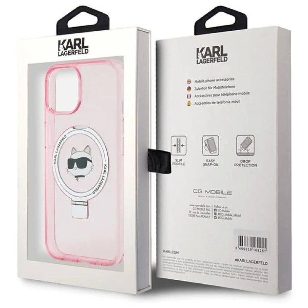 Ez a különleges tok egy nagyon praktikus gyűrűvel van gazdagítva, amely nemcsak a készülék töltésére szolgál, hanem állványként is használható, amelyen megpihenhet a telefon. Ennek a gyűrűnek köszönhetően kényelmesen folytathatsz videohívásokat és használhatod az iPhone multimédiás funkcióit anélkül, hogy használnád a kezedet. A termék a Karl Lagerfeld márka licence alatt készült.